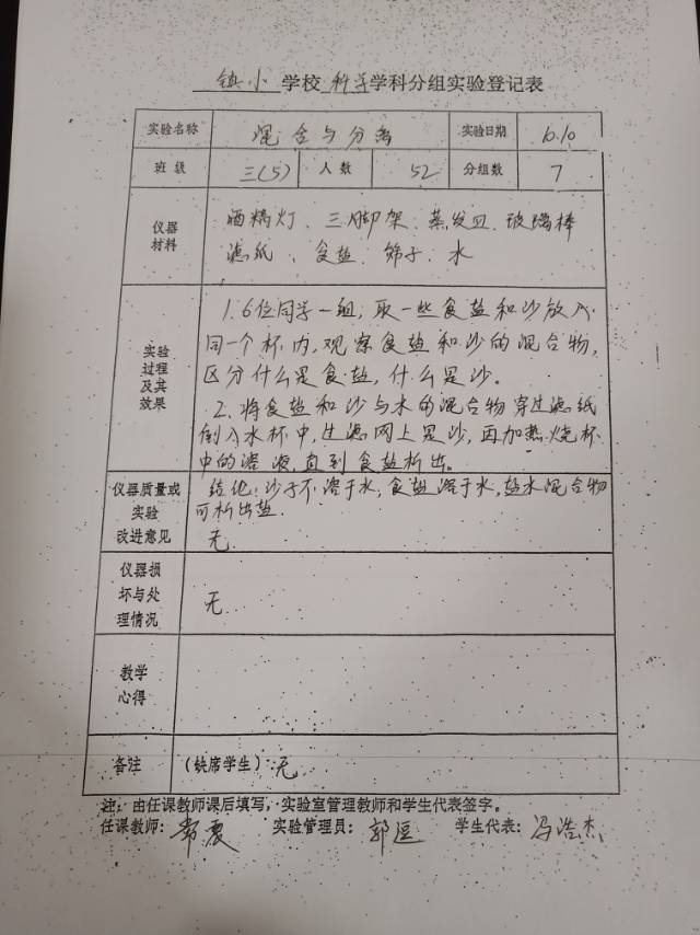 实验登记表