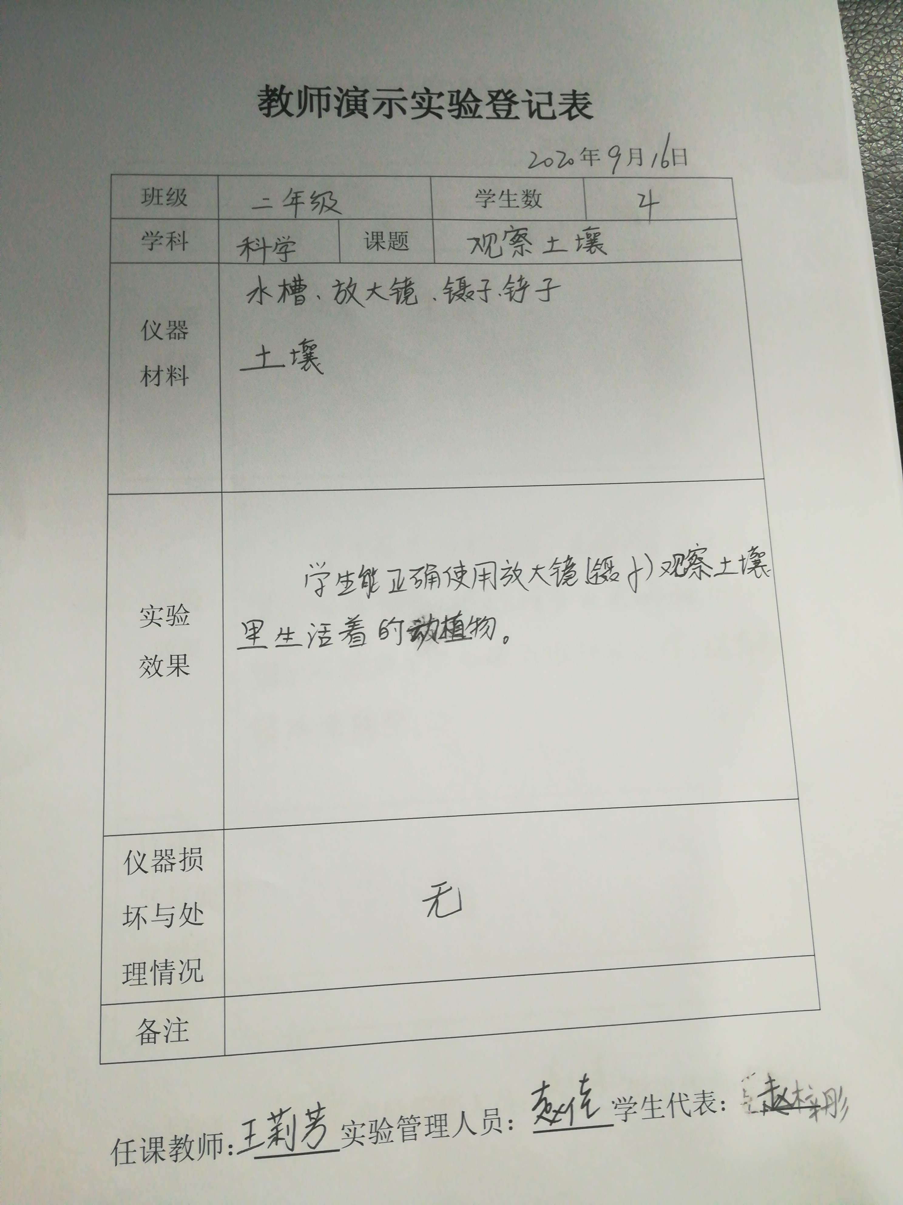 实验登记表