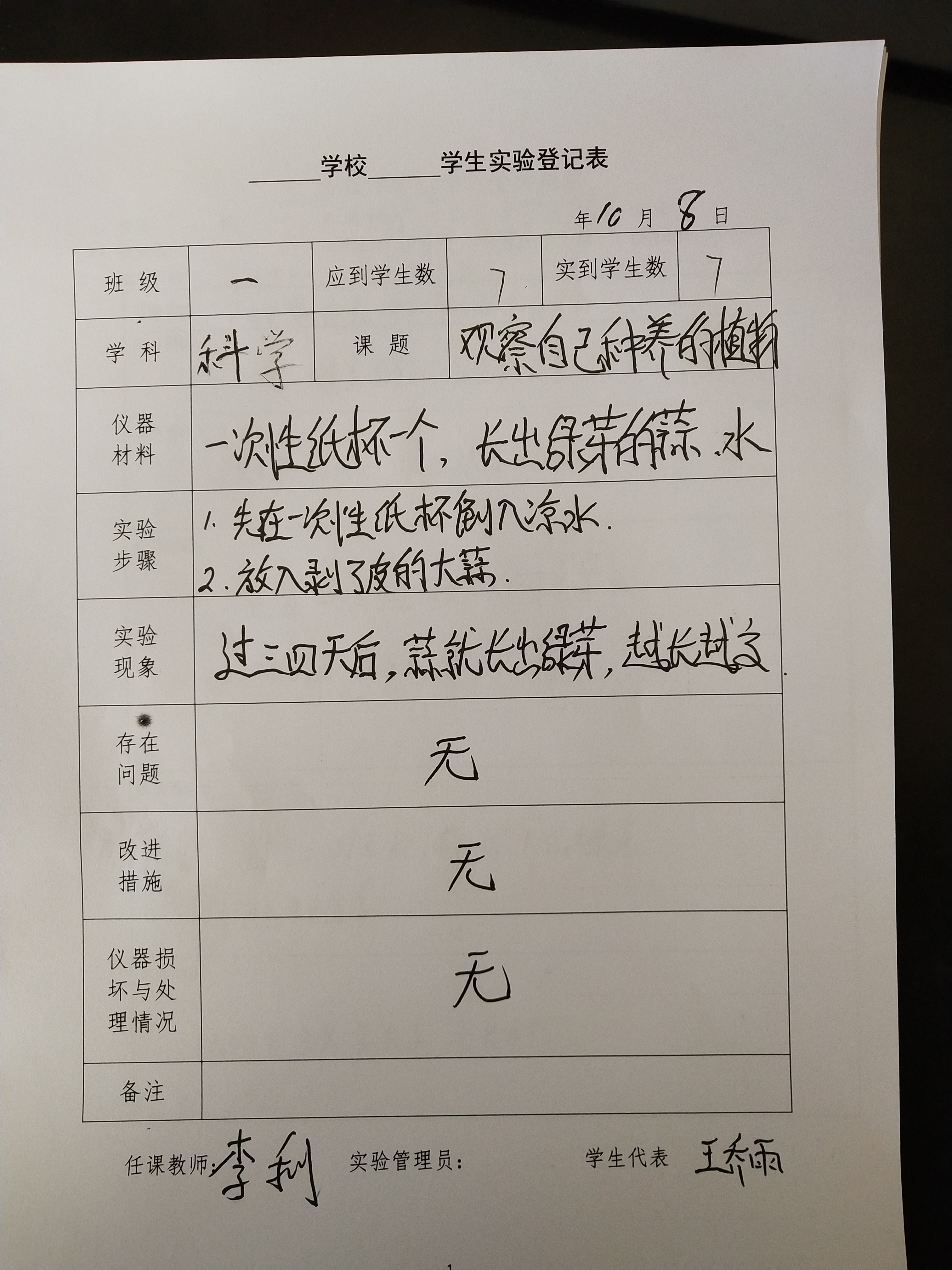 实验登记表