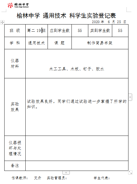 实验登记表