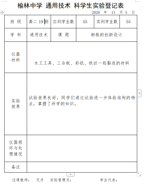 实验登记表