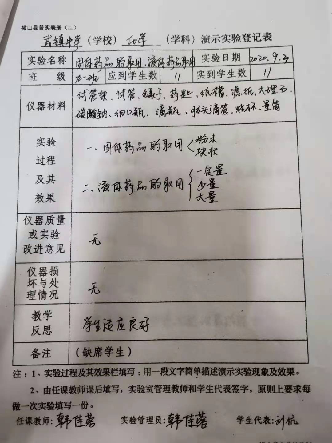 实验登记表
