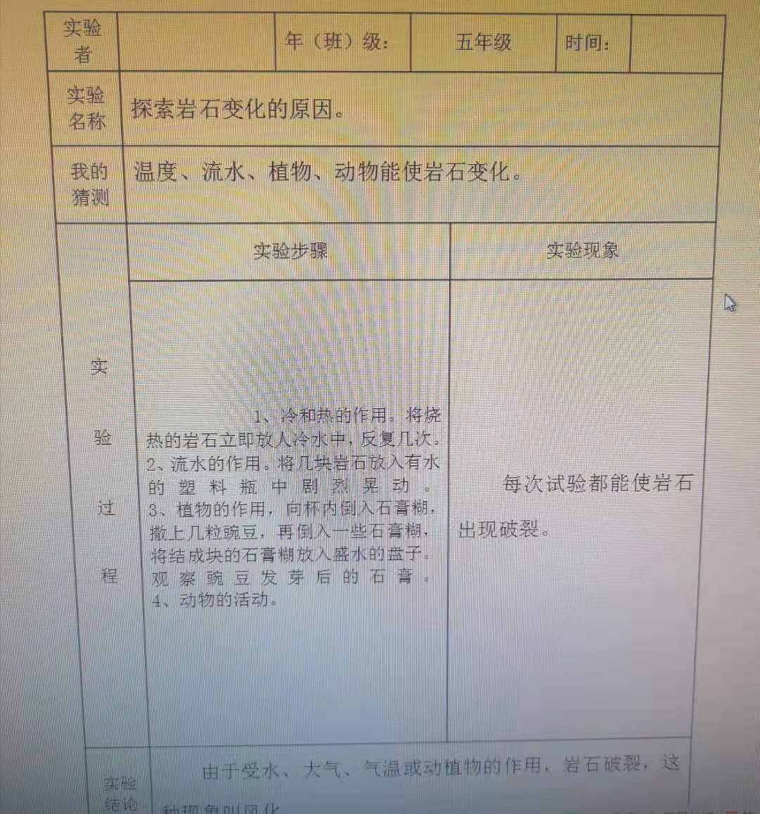 探究冷热变化、流水对岩石的影响