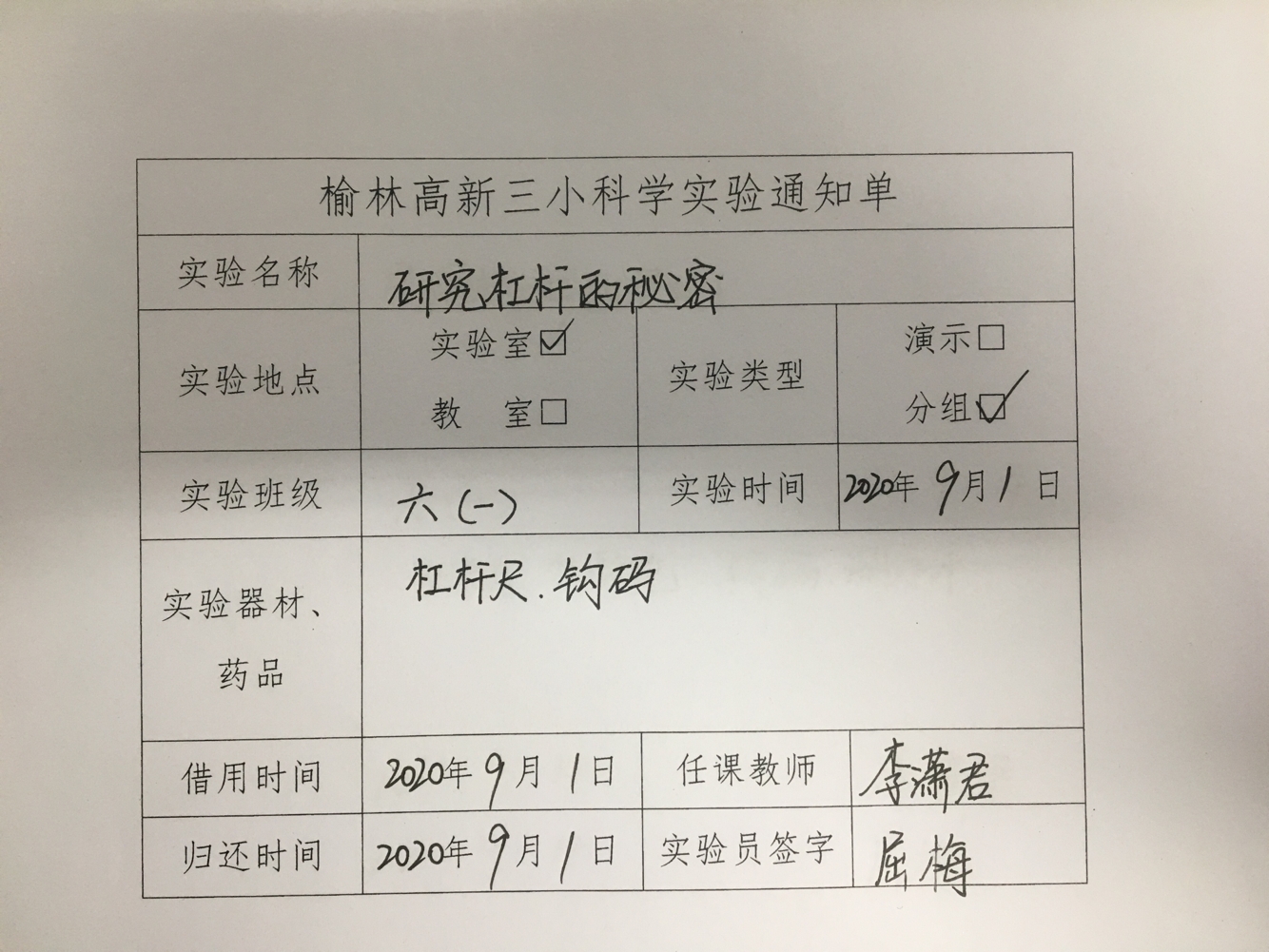 实验登记表