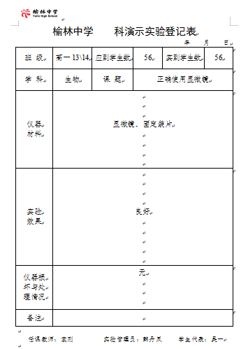 实验登记表