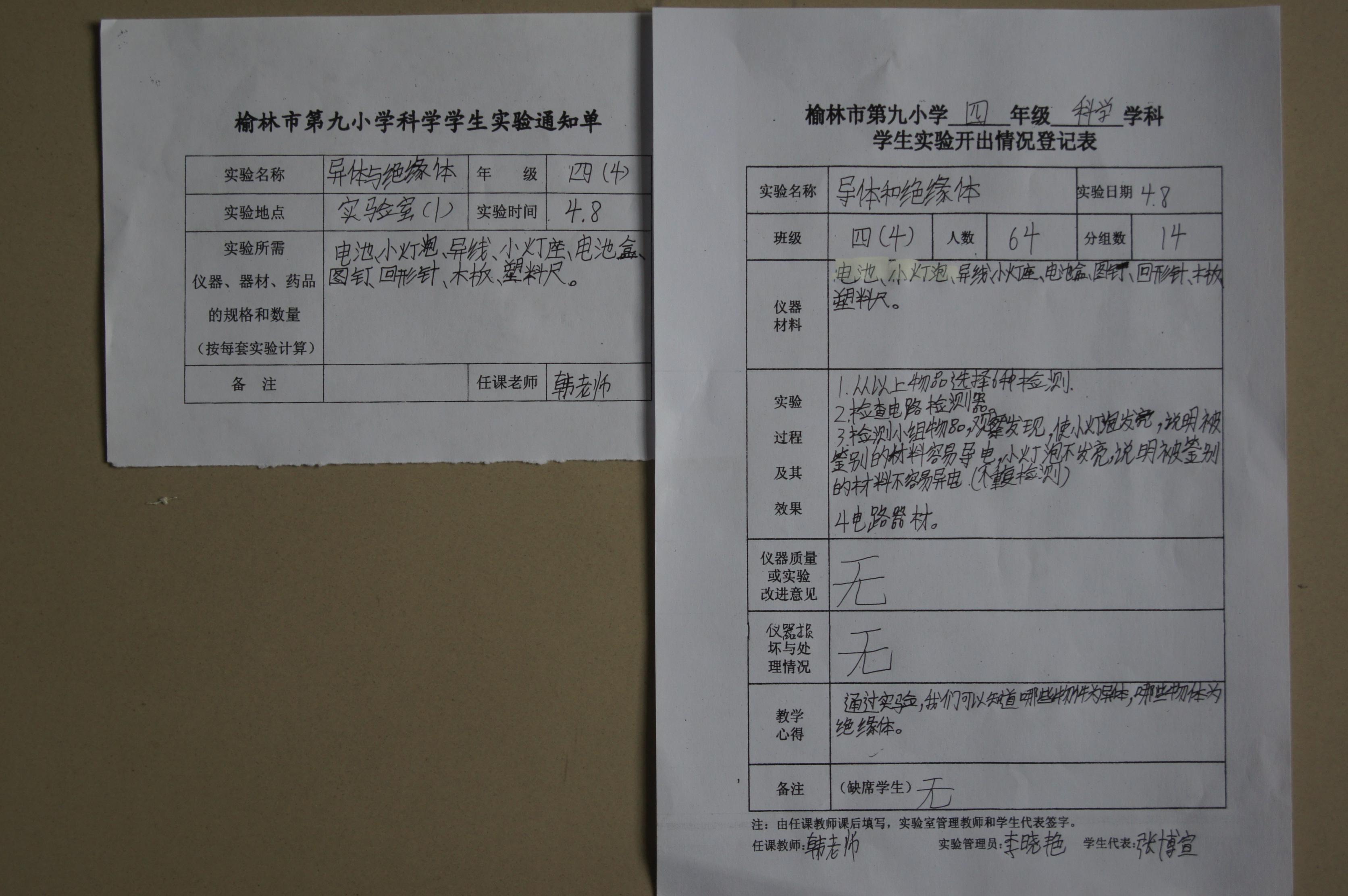 实验登记表
