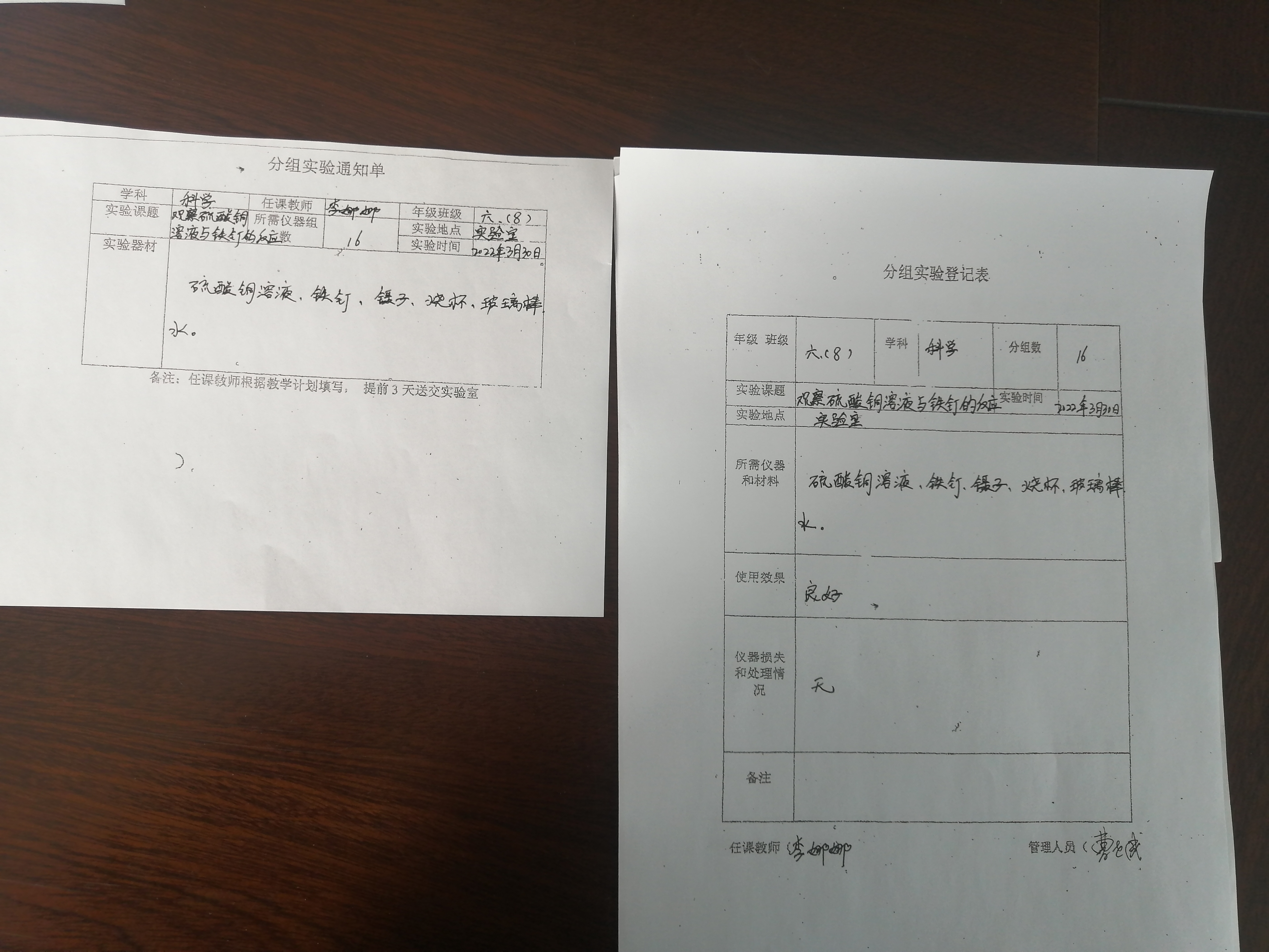 实验登记表