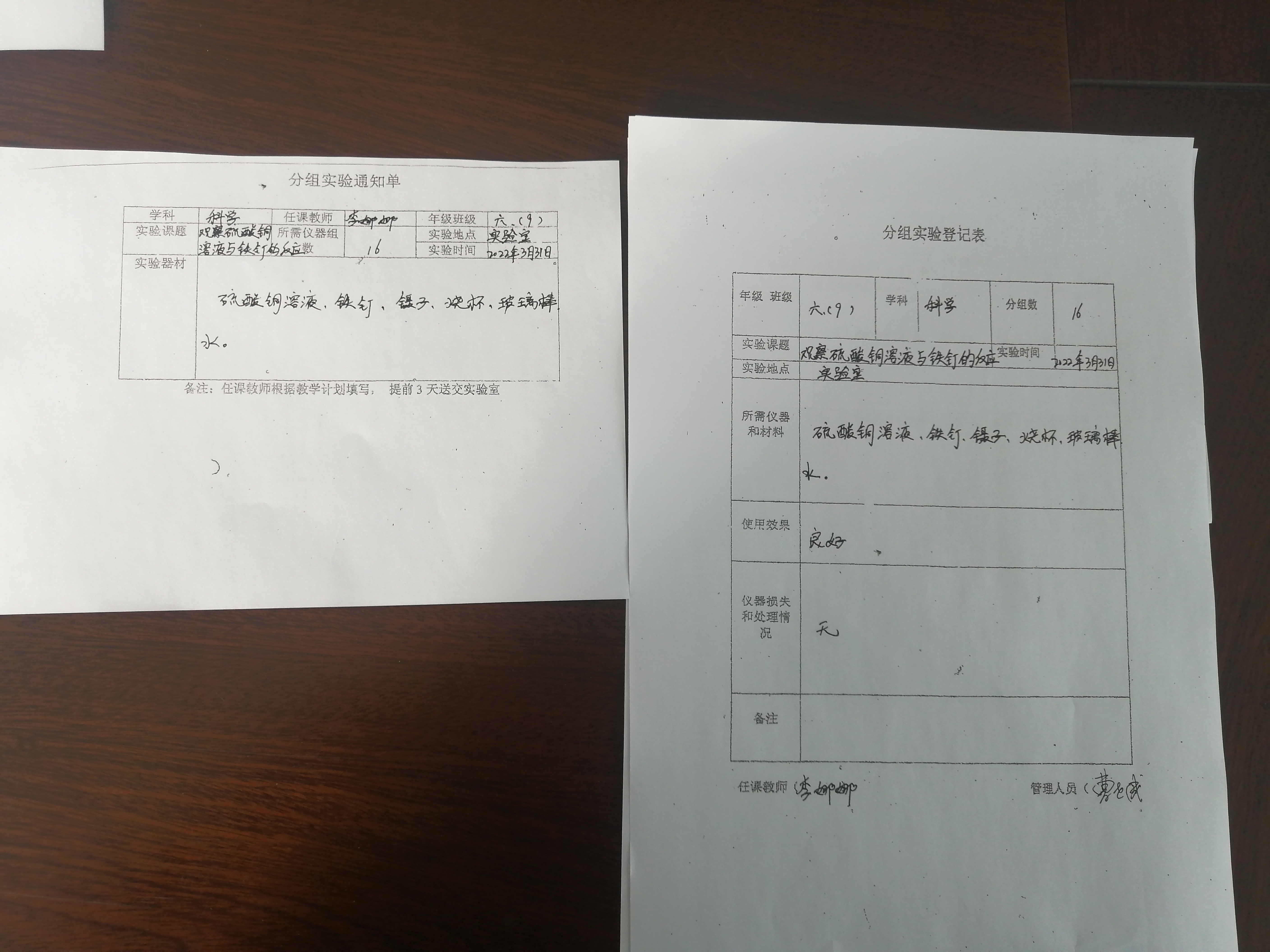 实验登记表
