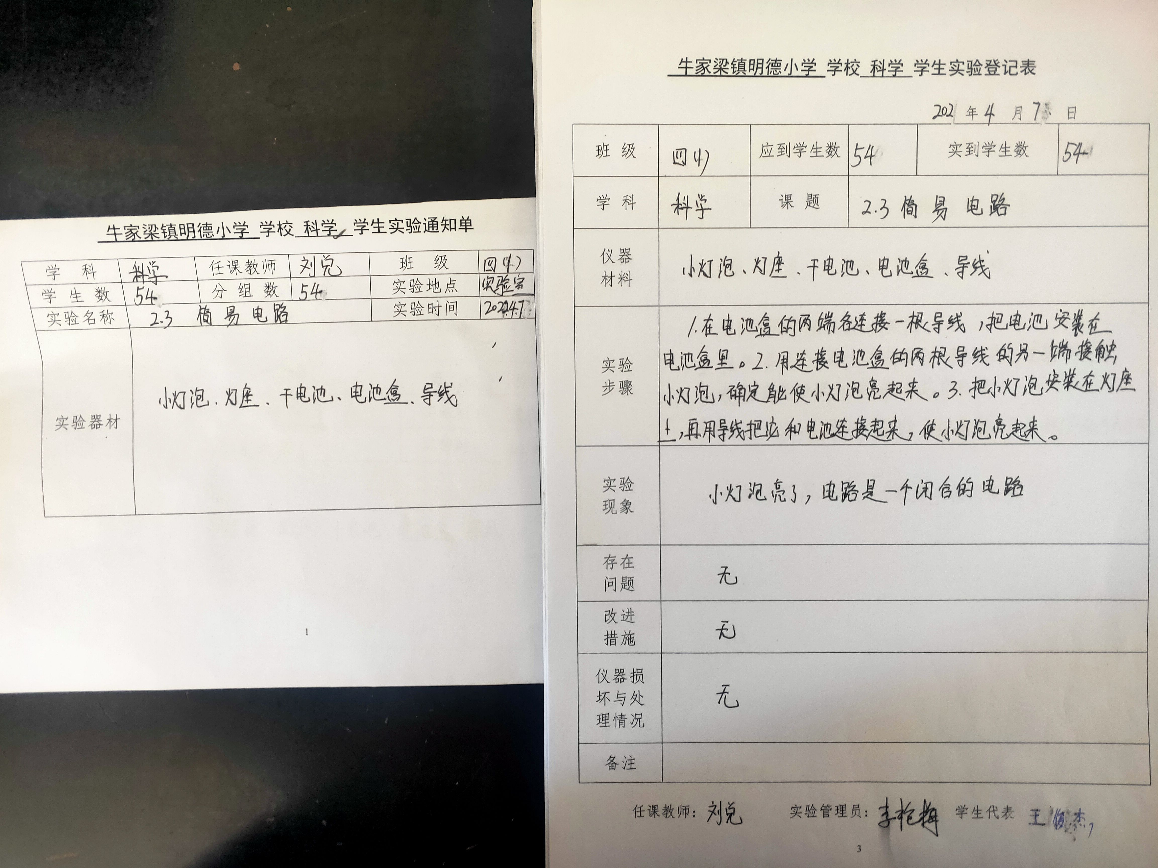 实验登记表