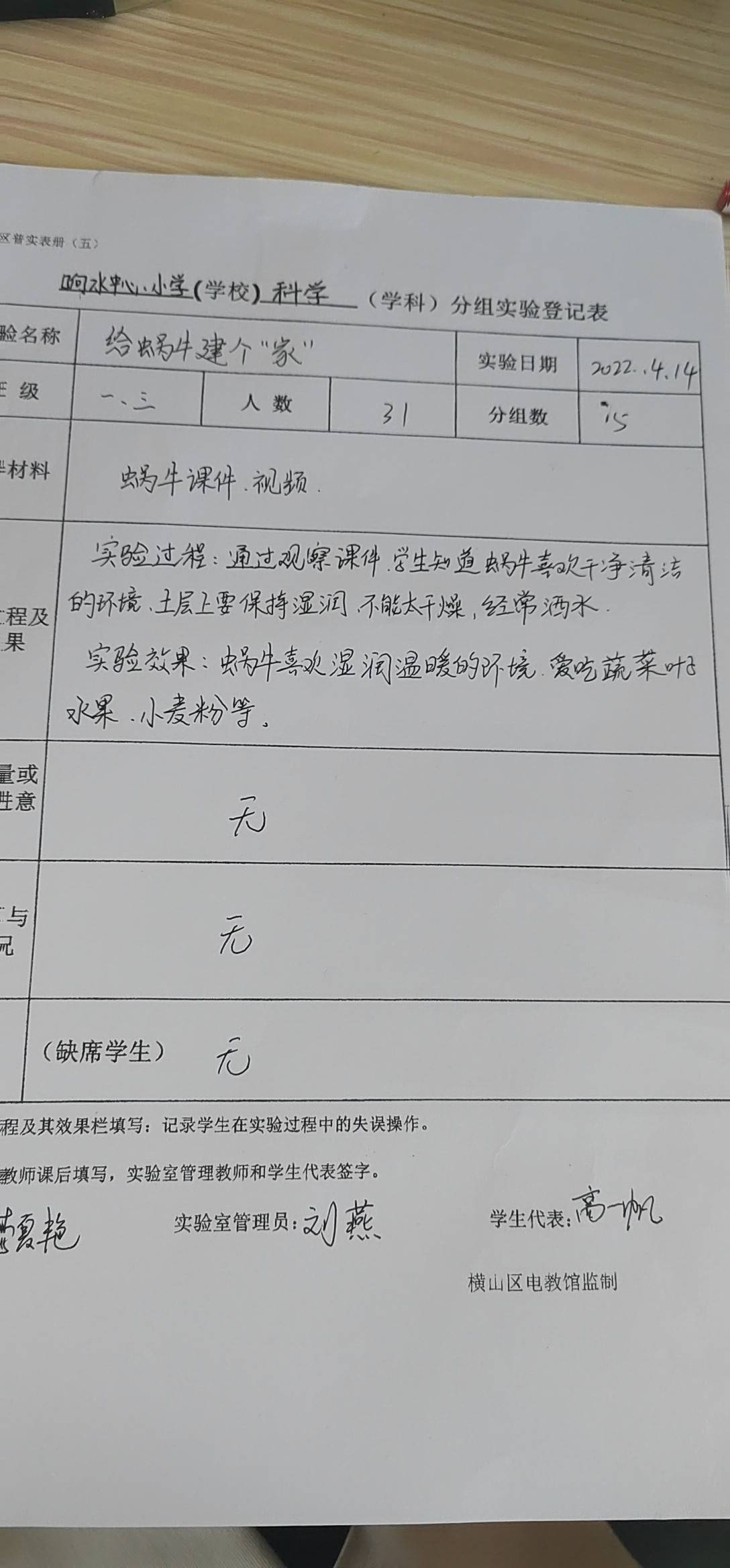 实验登记表
