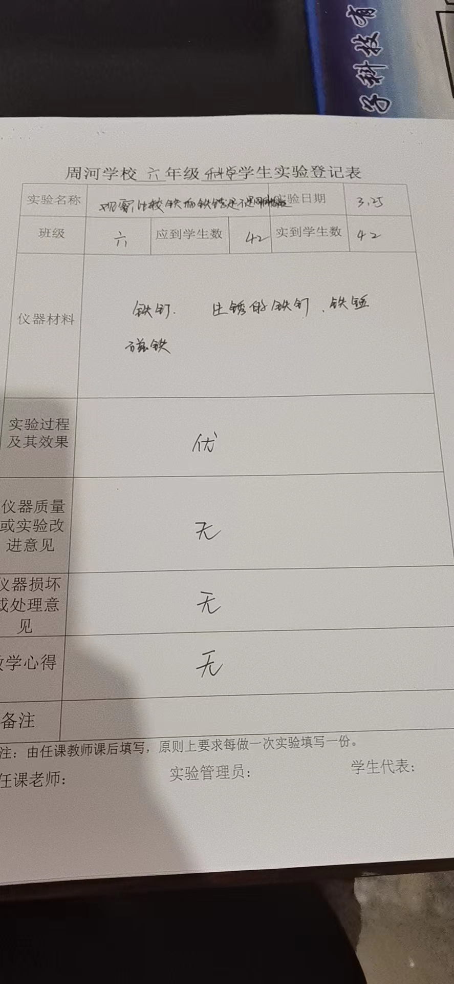 实验登记表