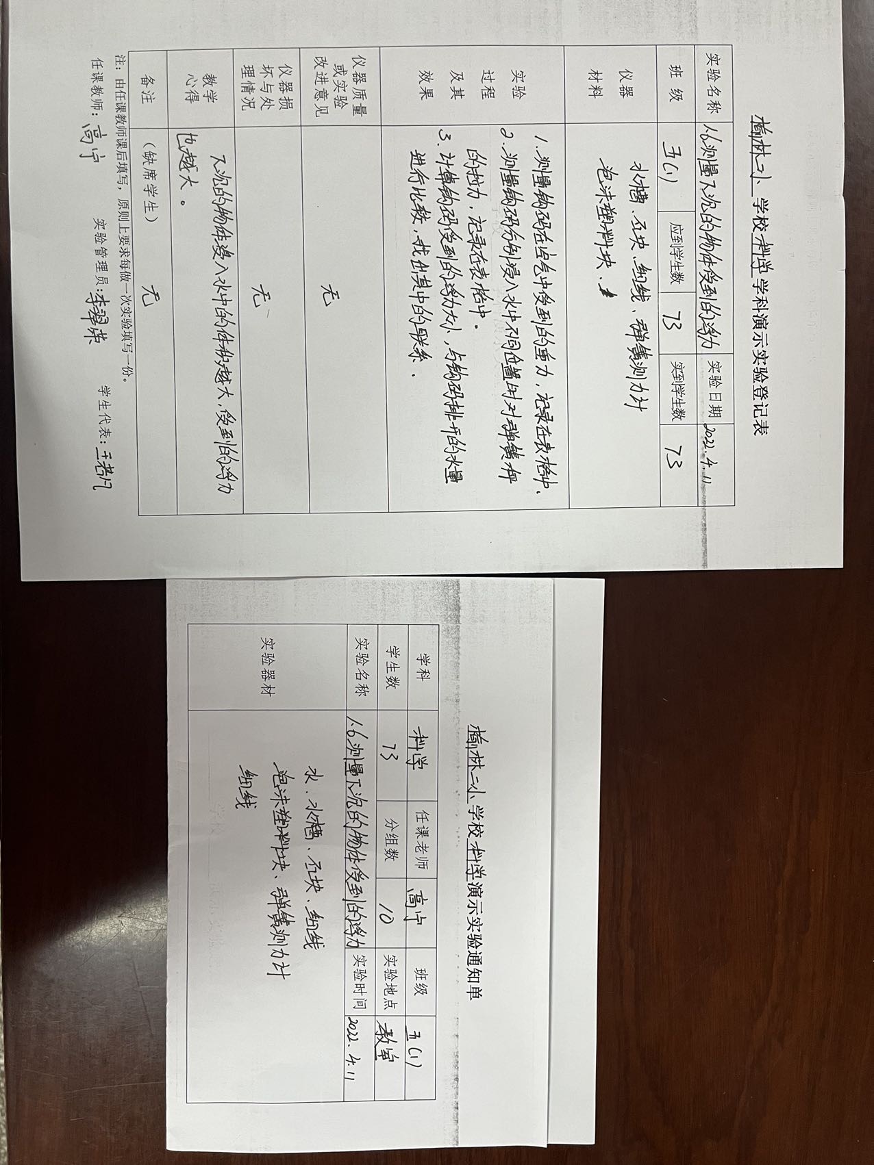 实验登记表
