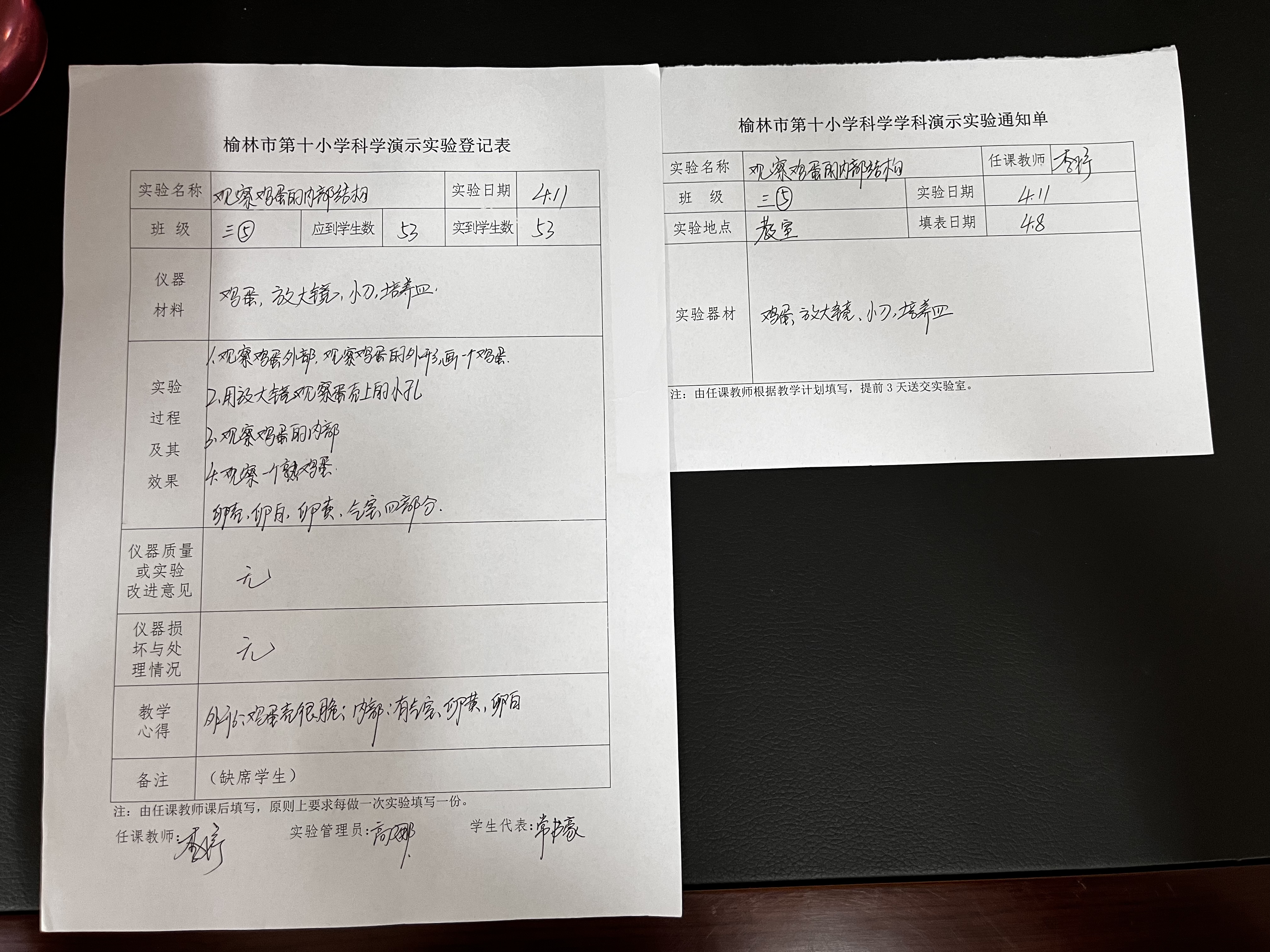 观察鸡蛋内部结构