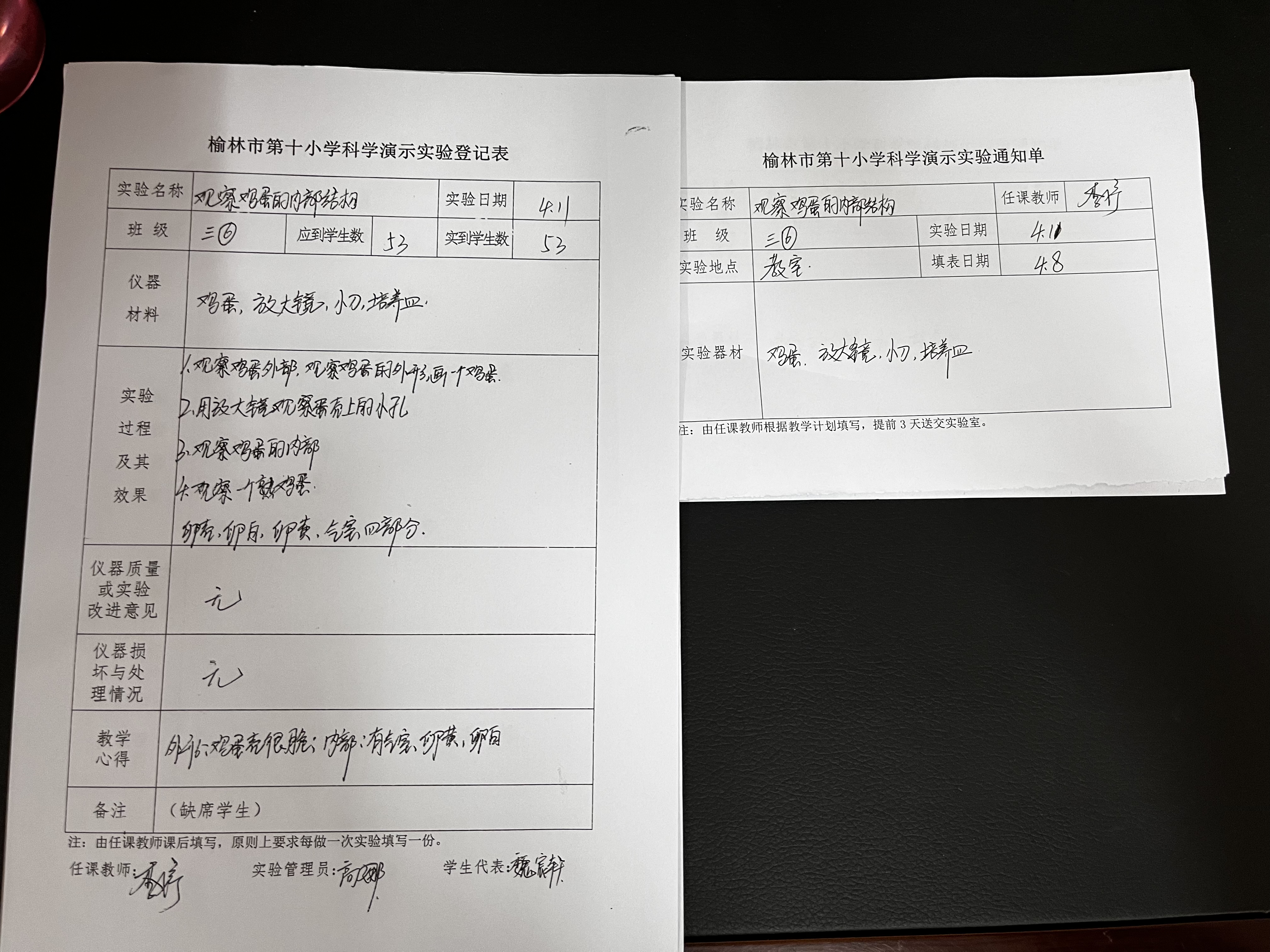 观察鸡蛋内部结构