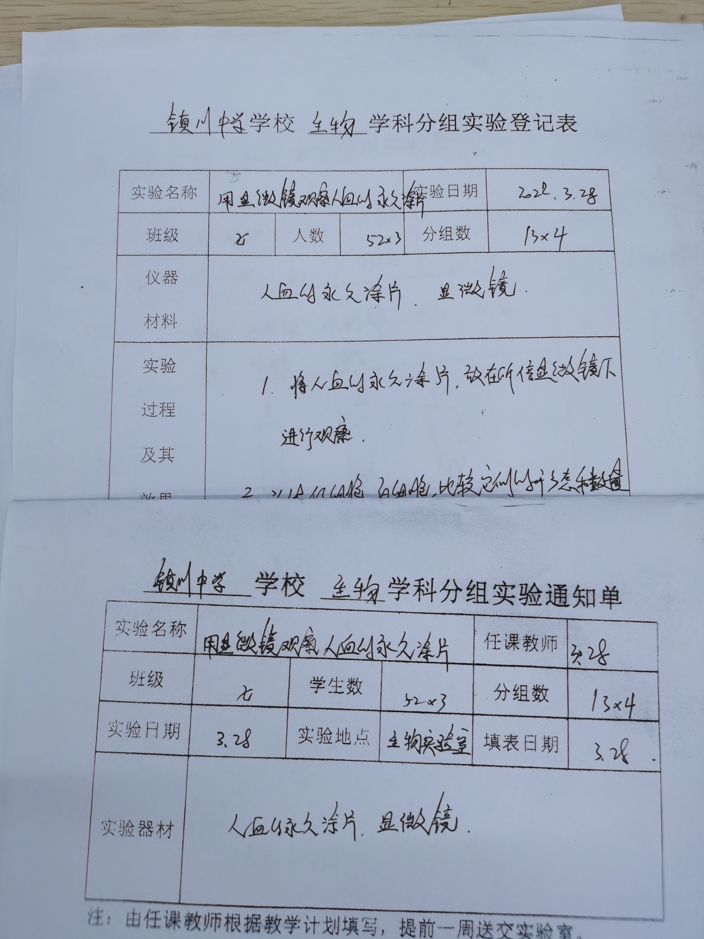 实验登记表