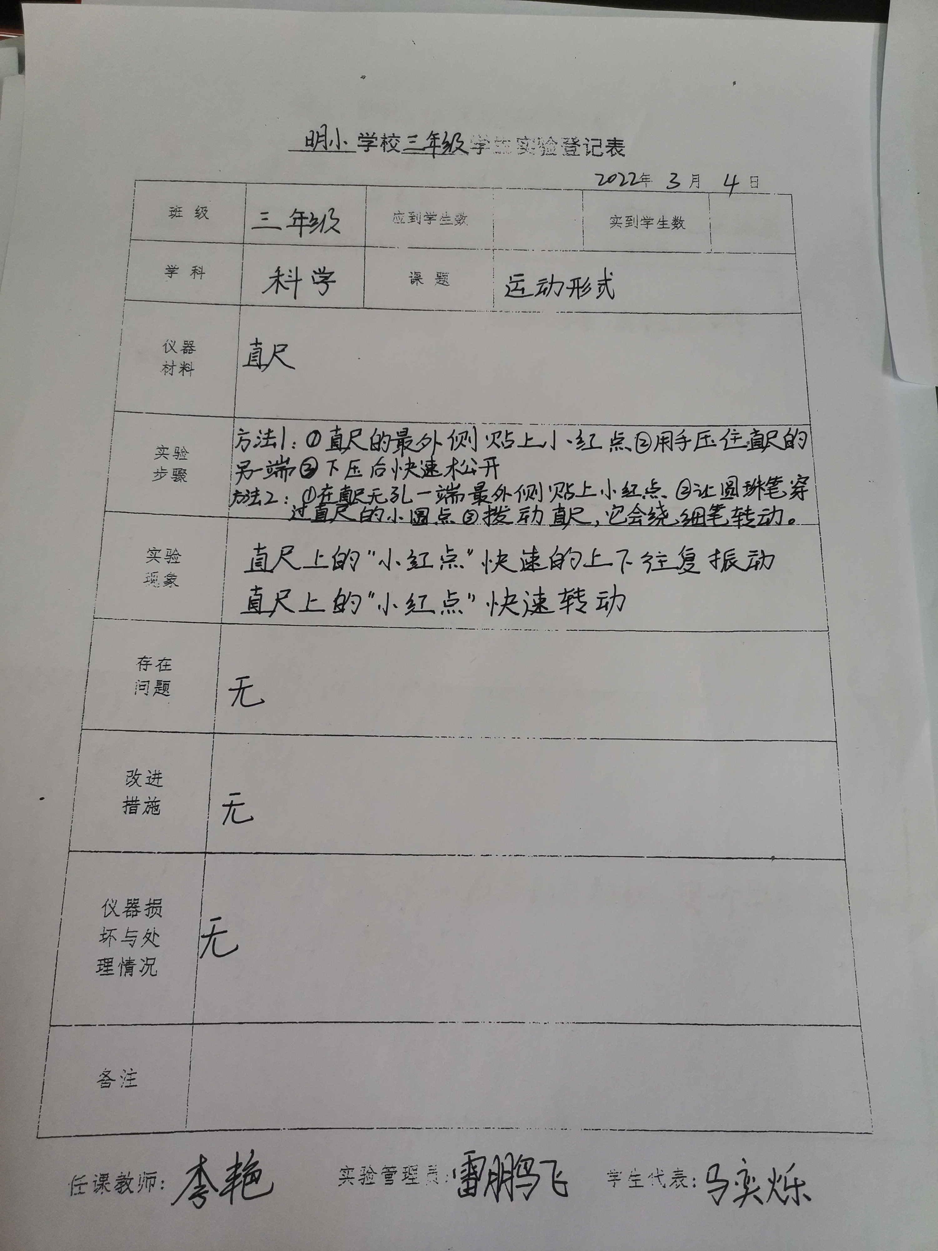 实验登记表