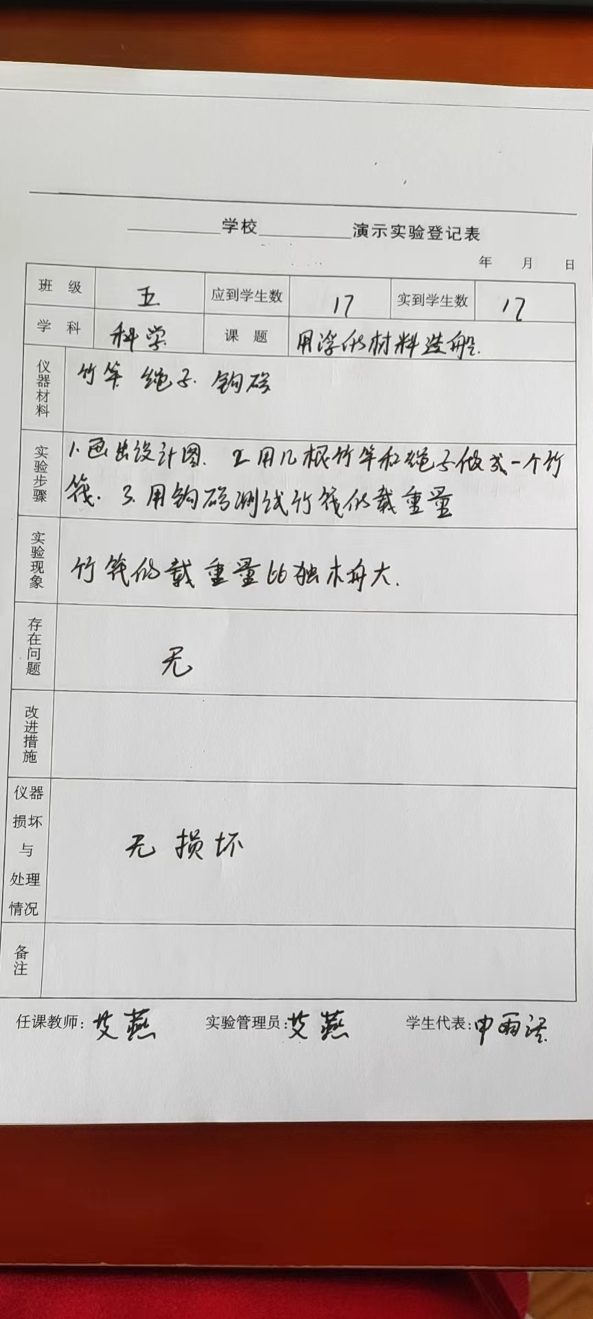 实验登记表