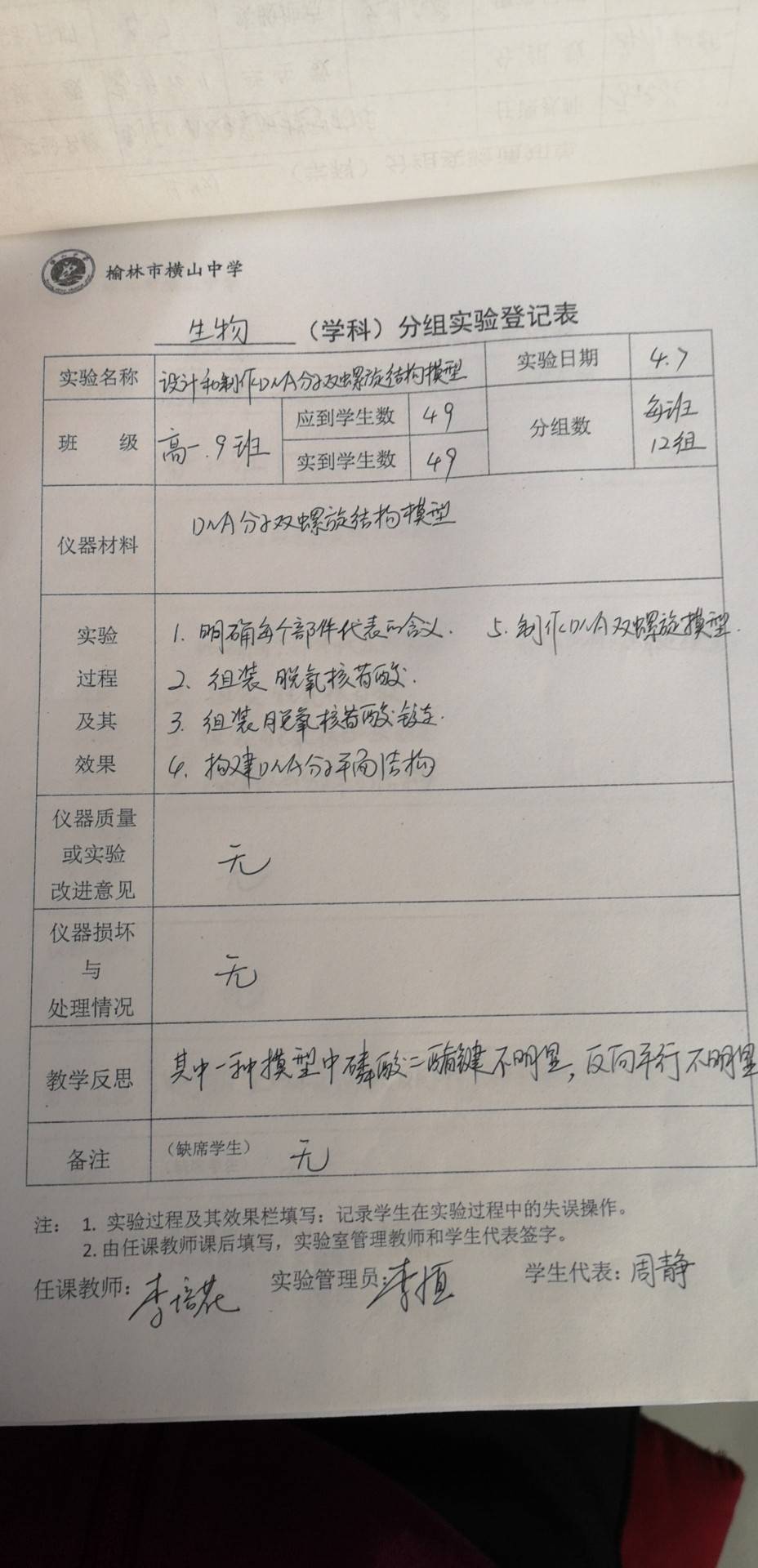 实验登记表