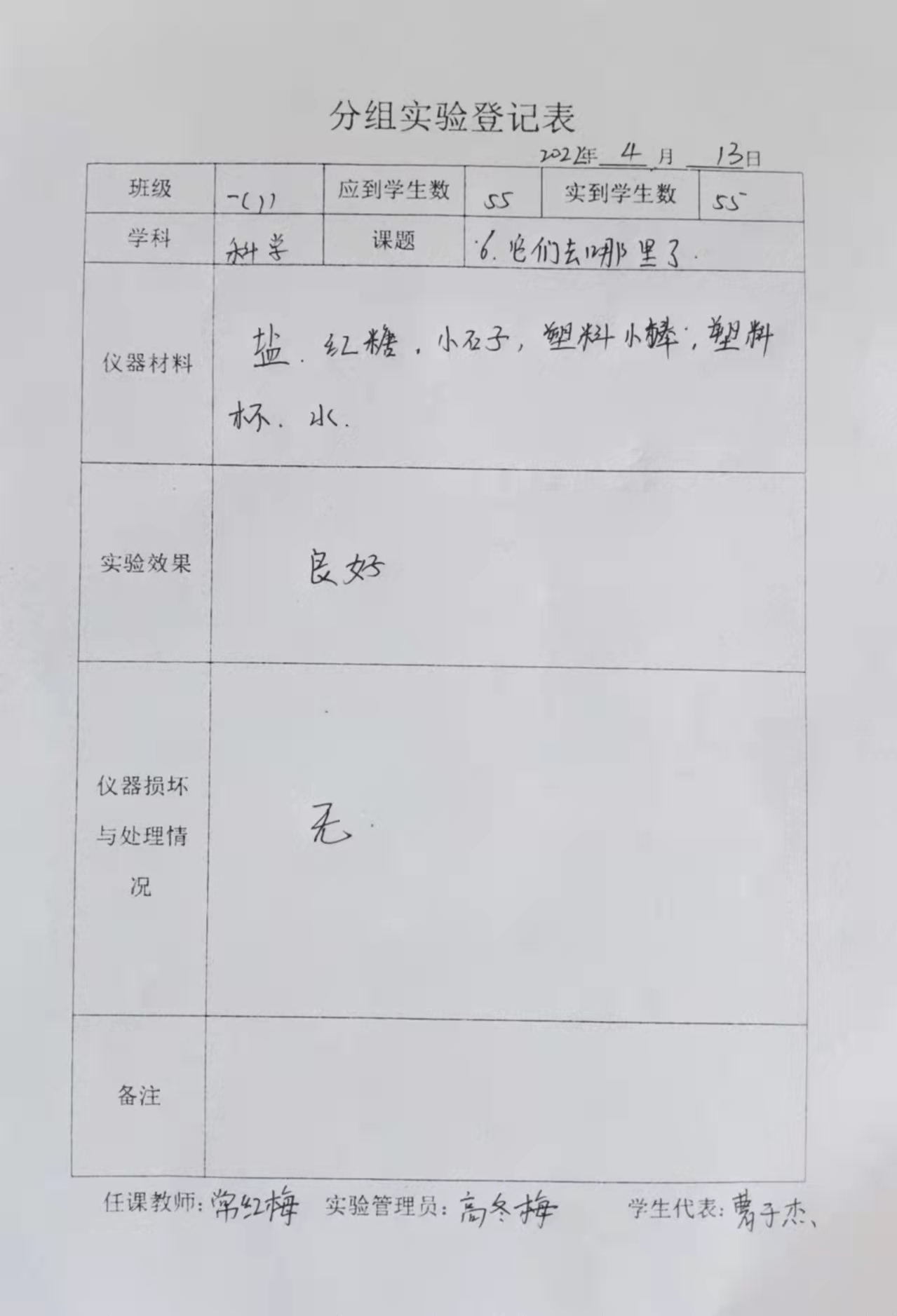 实验登记表