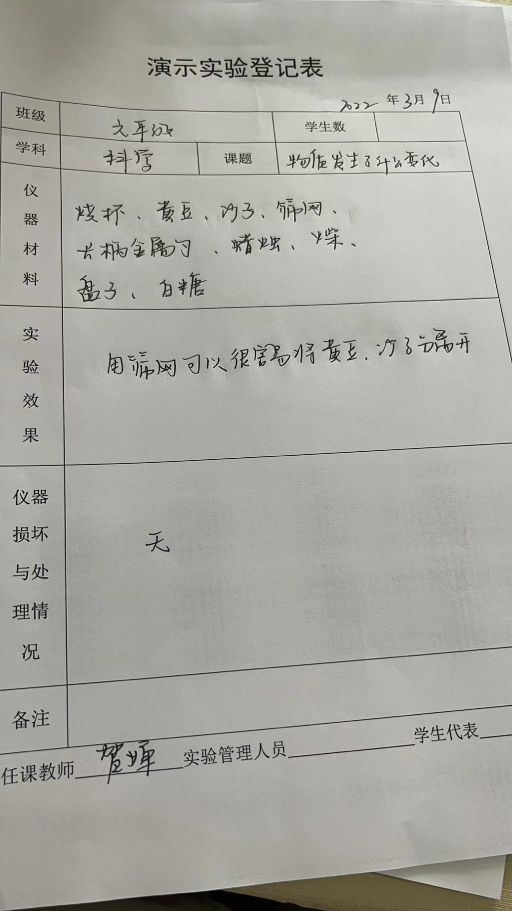 实验登记表