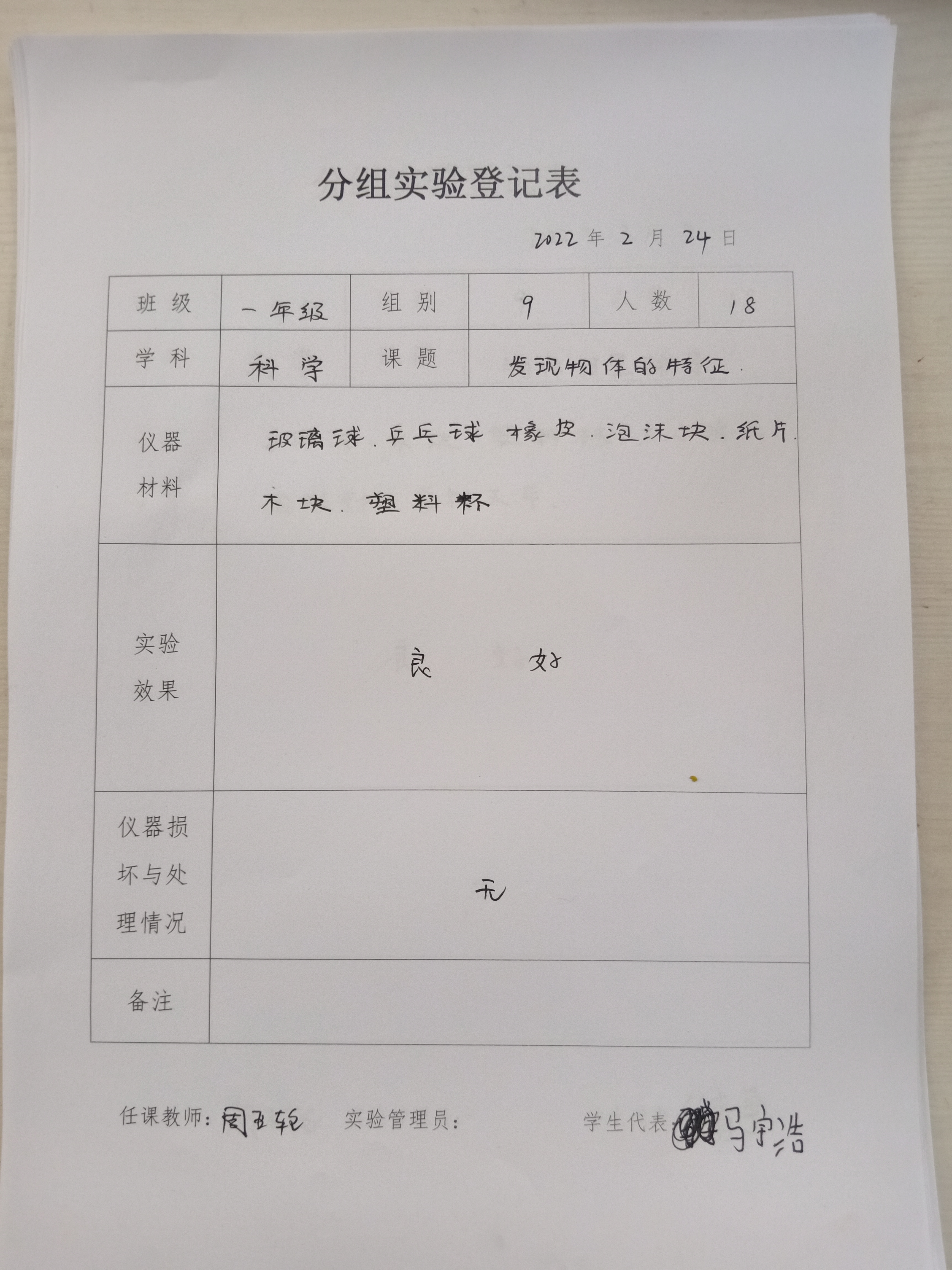 实验登记表