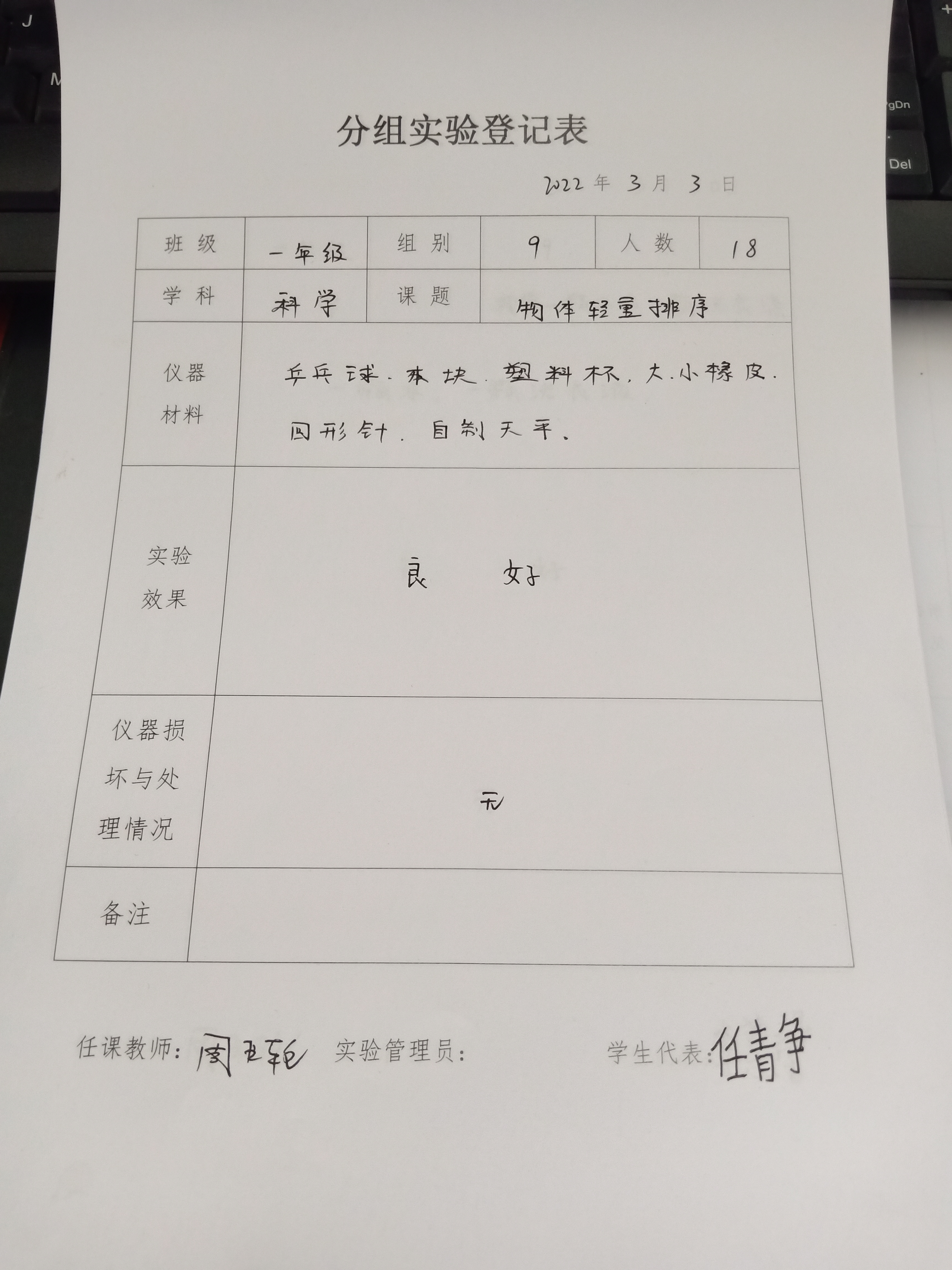 实验登记表