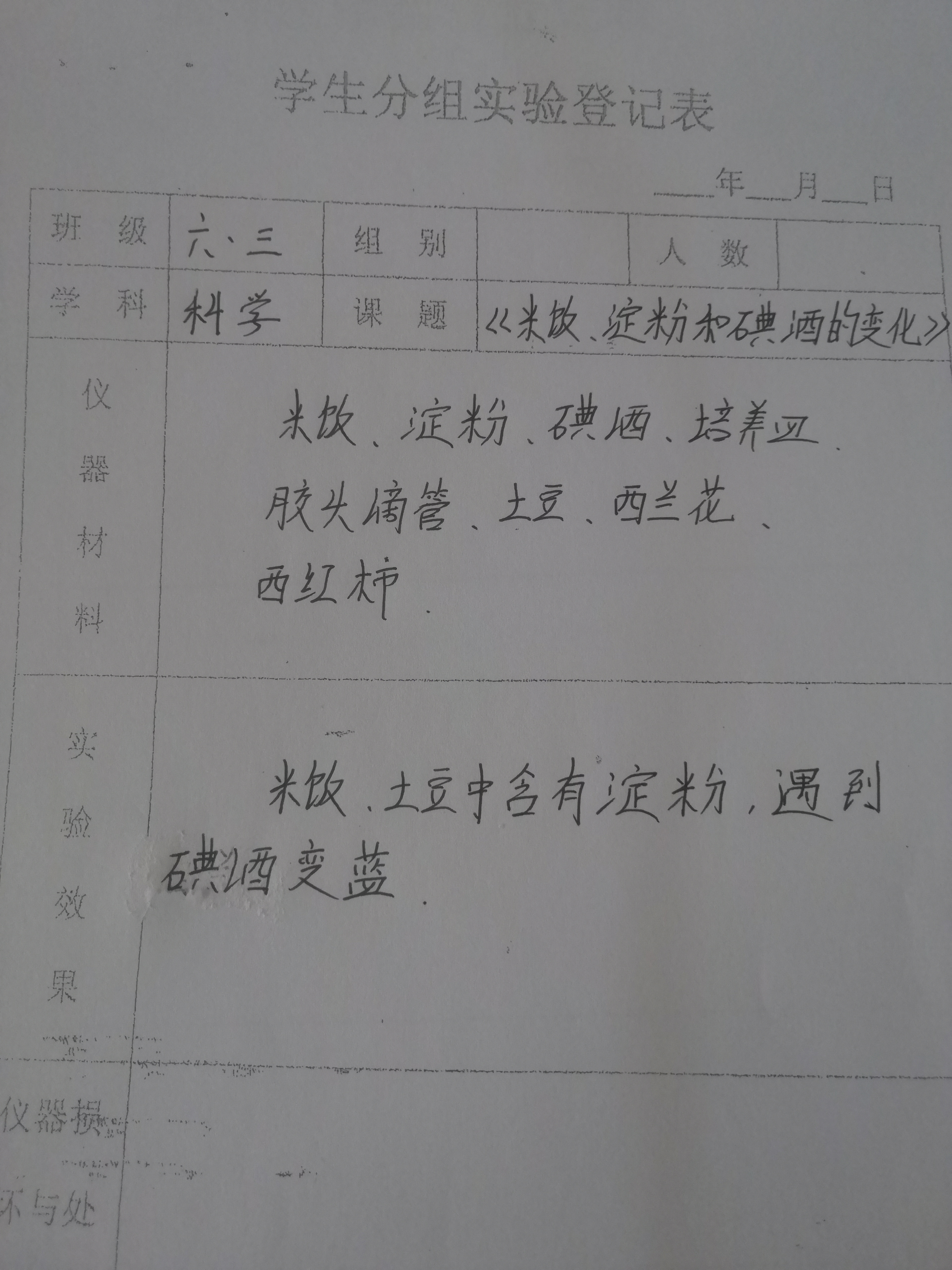 米饭、淀粉和碘酒的变化