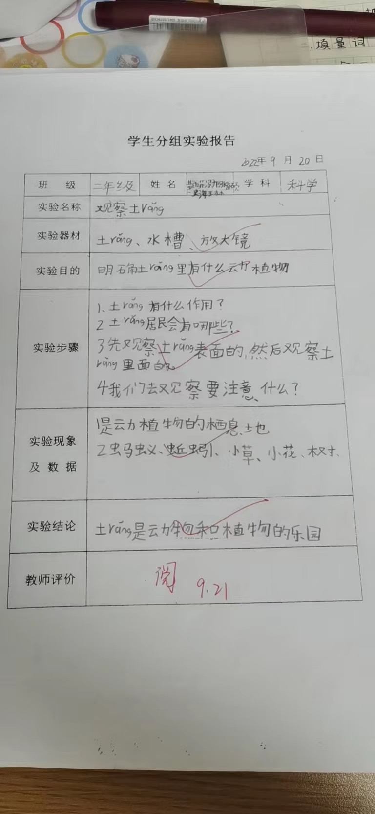 年级科目:二年级科学
