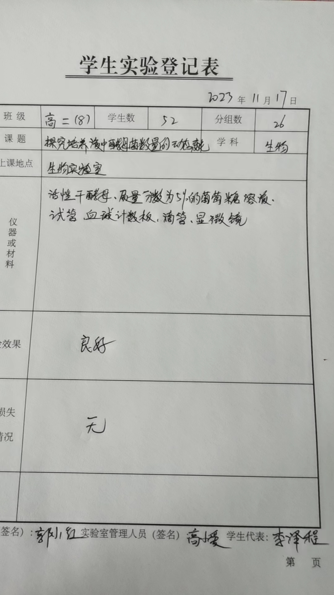 实验登记表