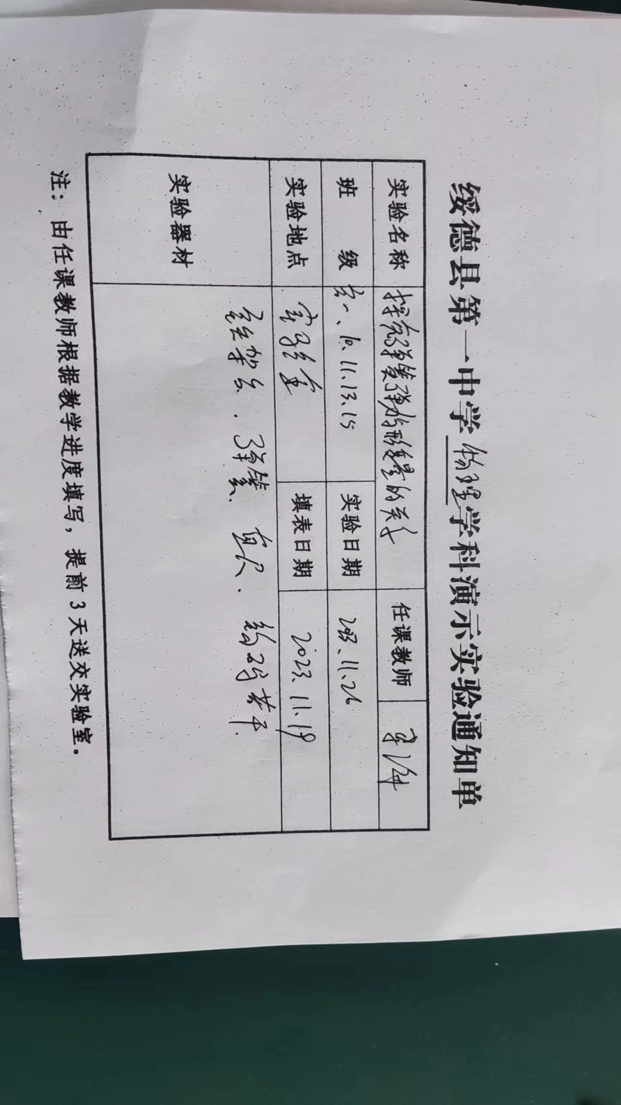 实验登记表