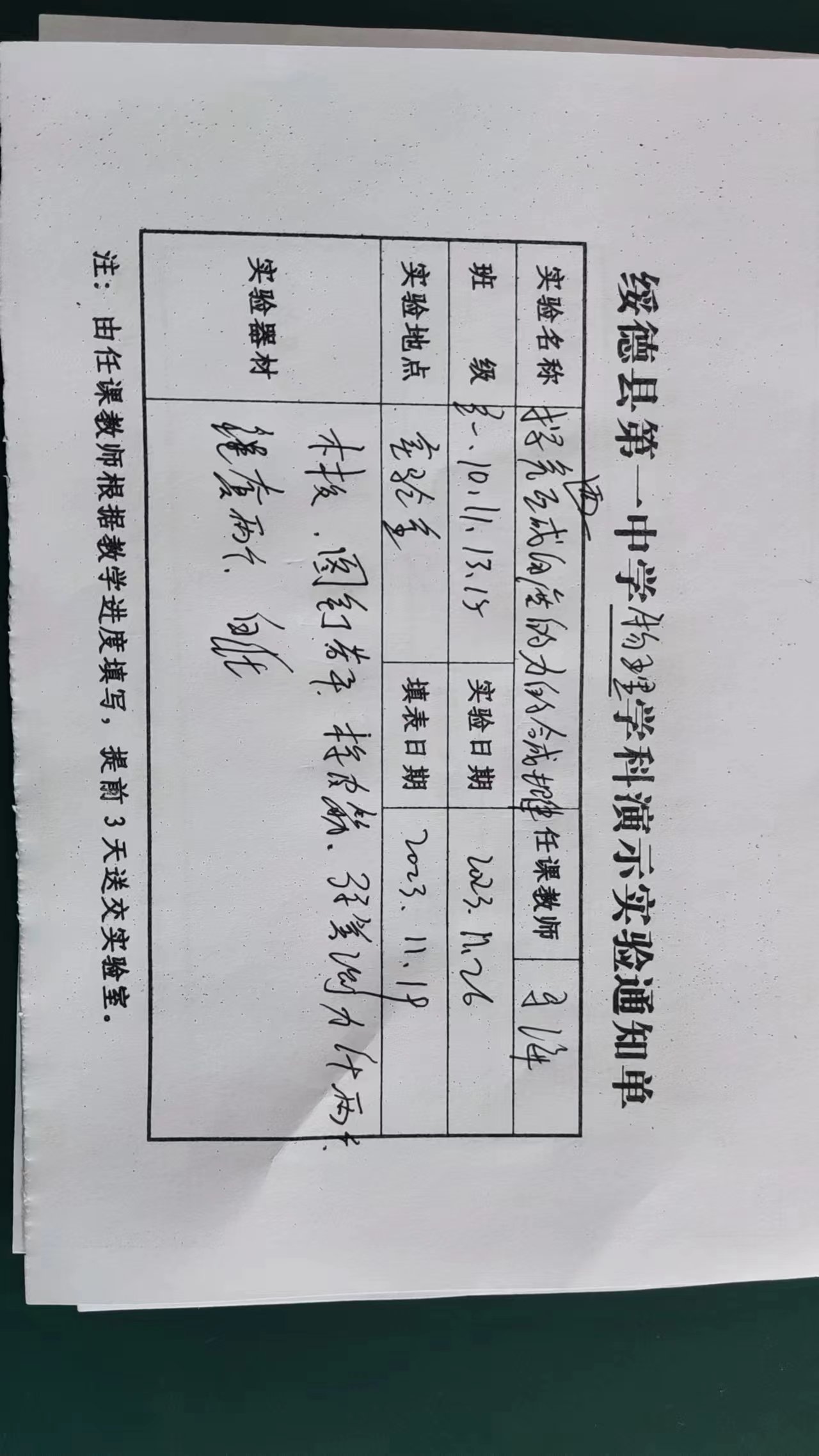 实验登记表