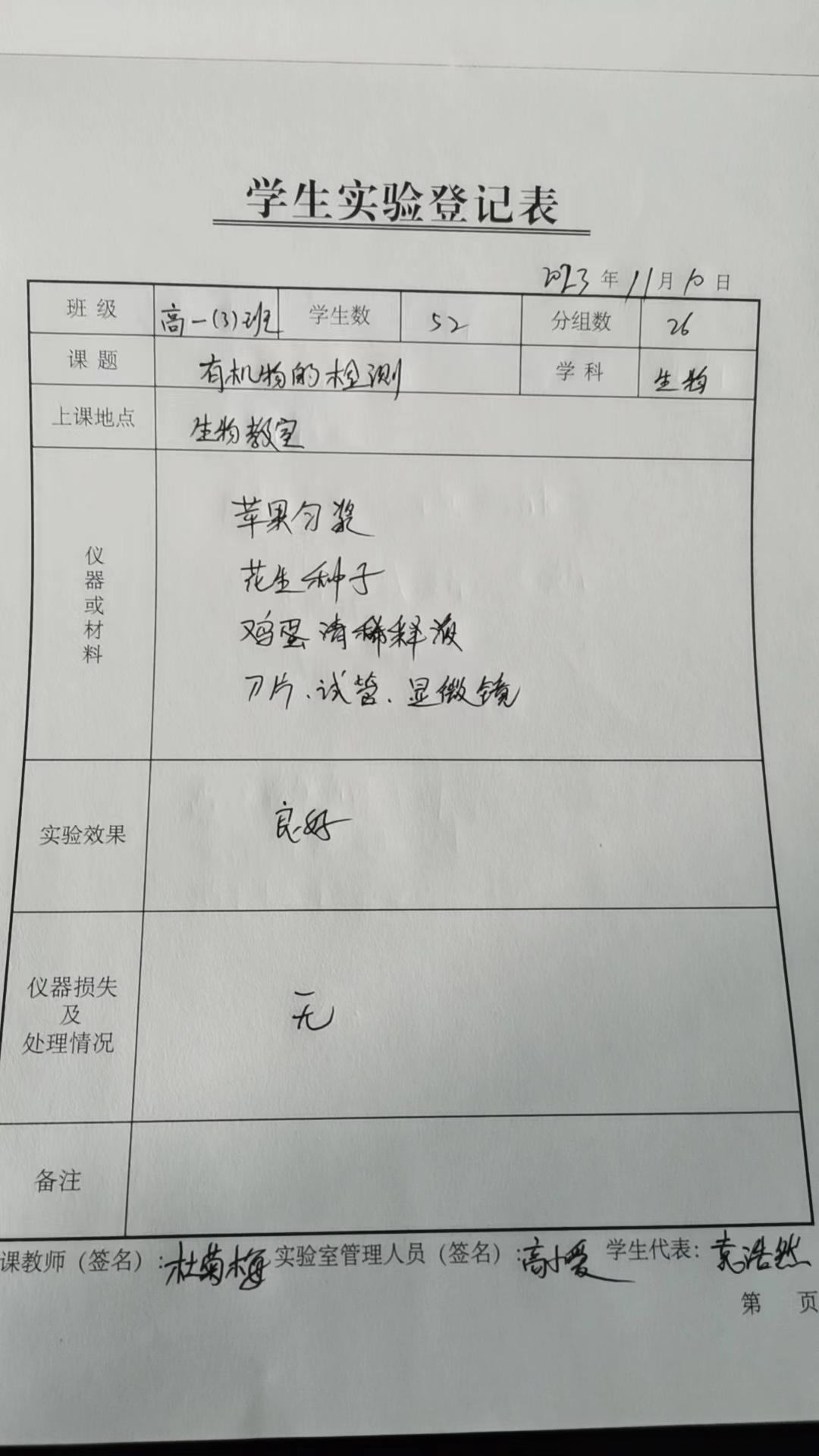 实验登记表