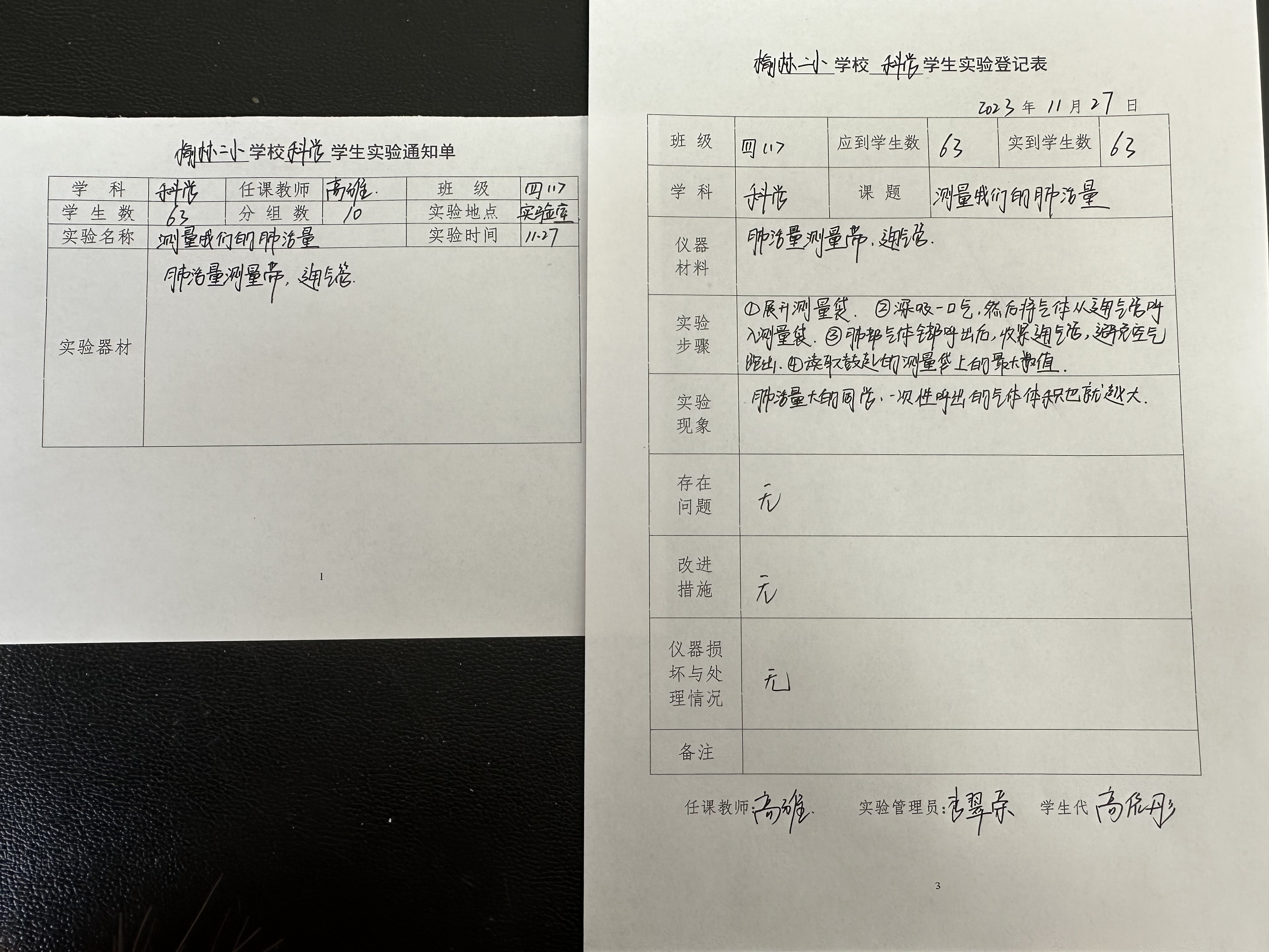 实验登记表