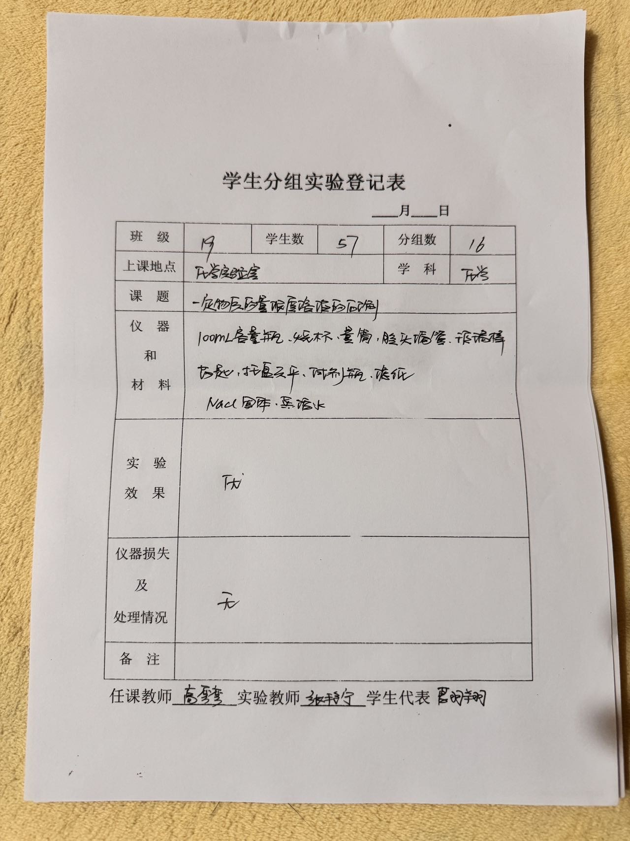 实验登记表