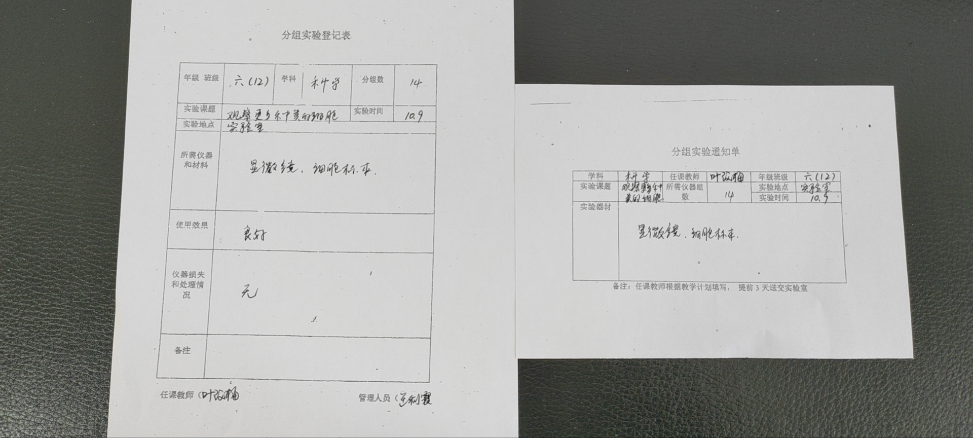 实验登记表