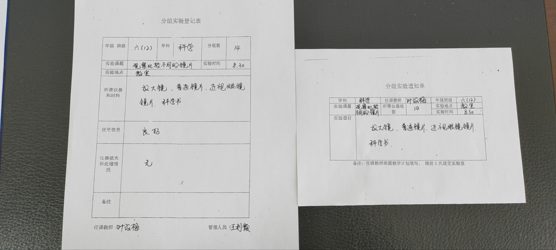 实验登记表