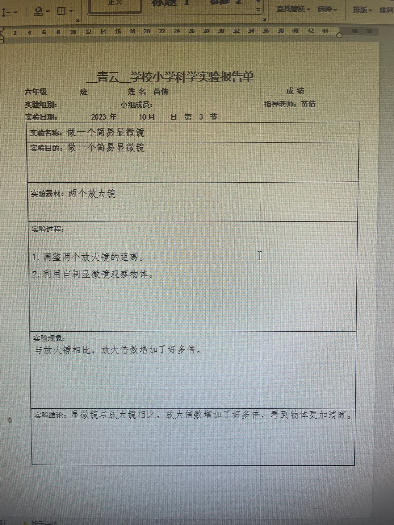 实验教师:苗倩