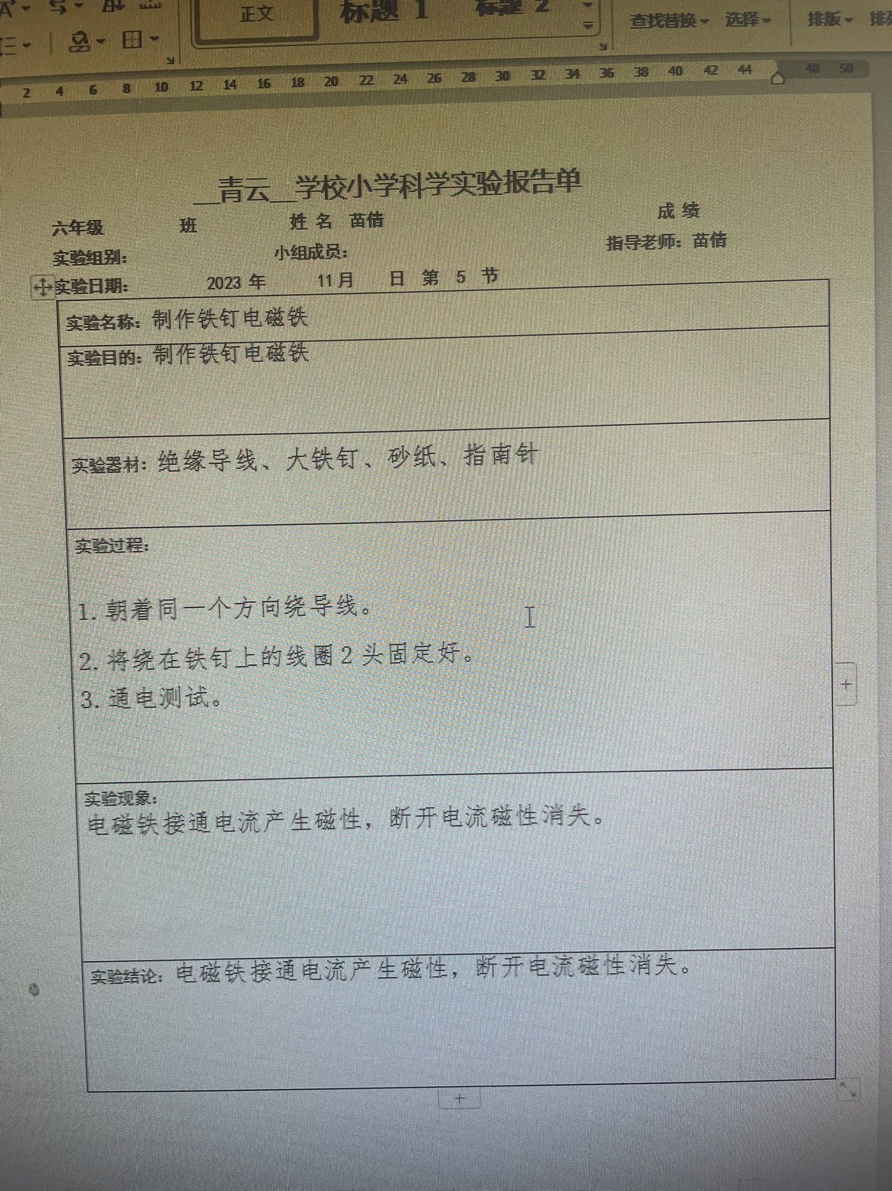实验教师:苗倩