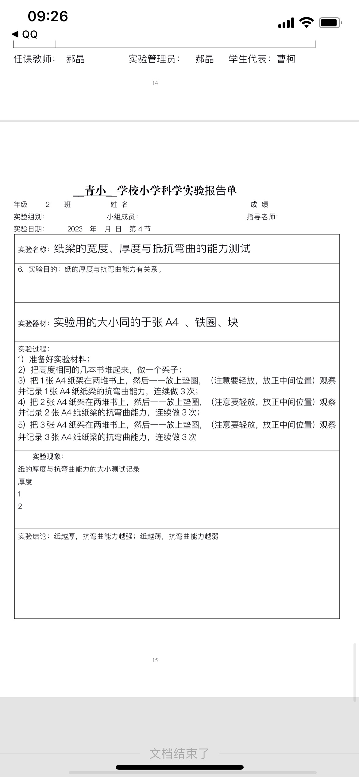 实验教师:苗倩