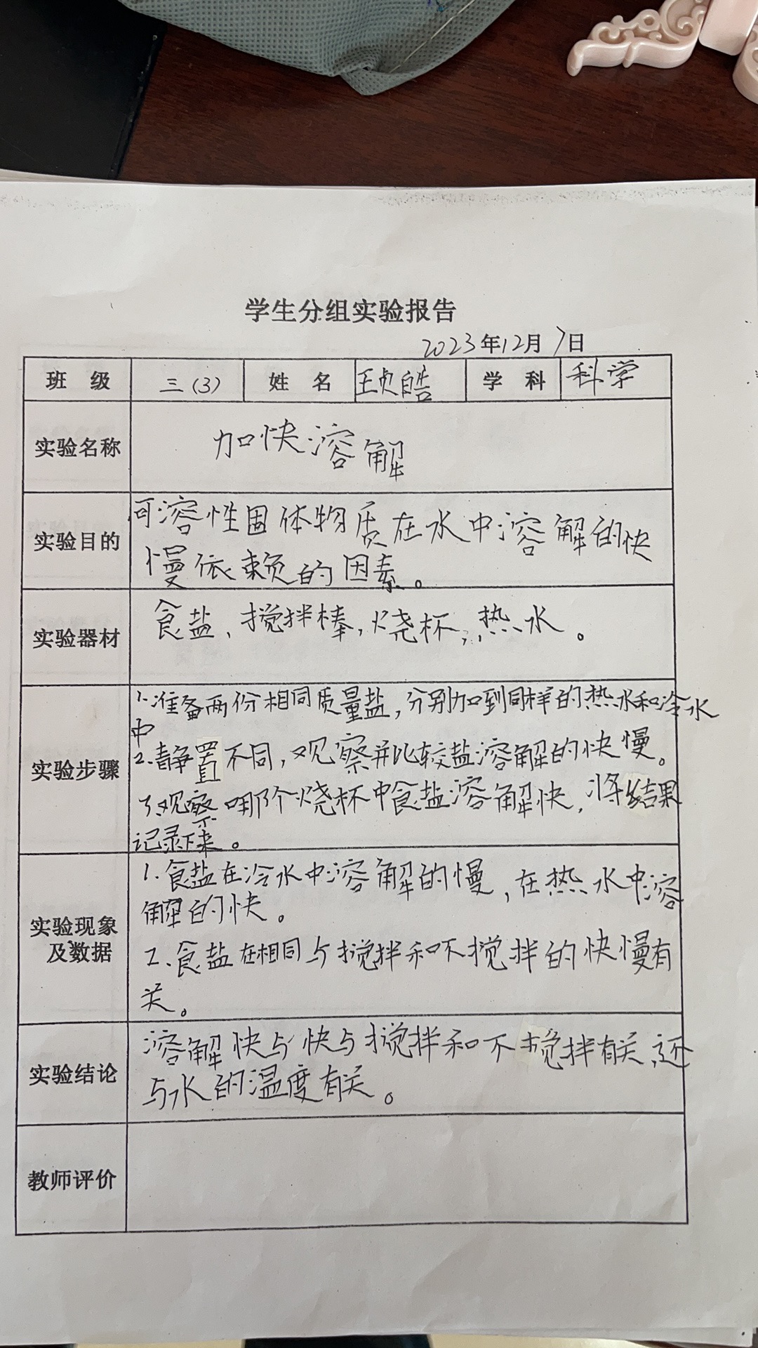 年级科目:三年级科学