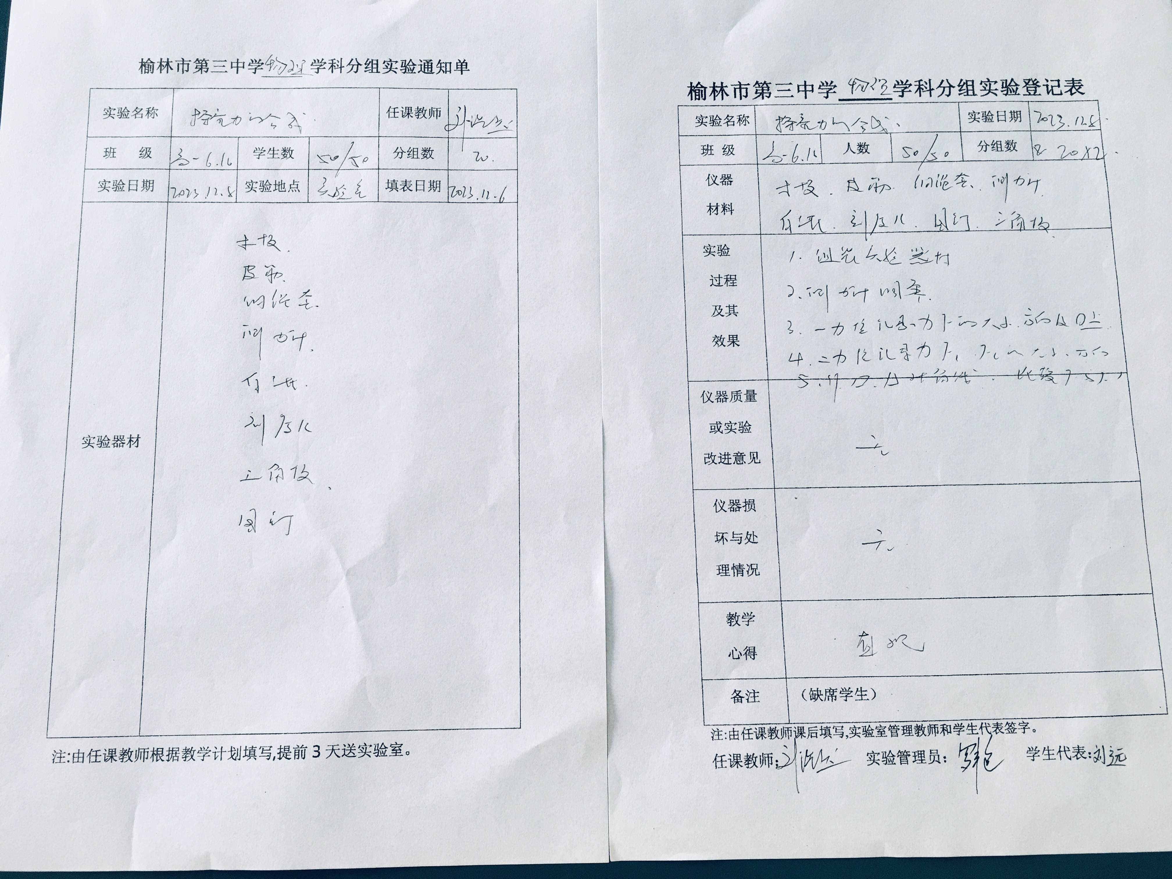 实验登记表