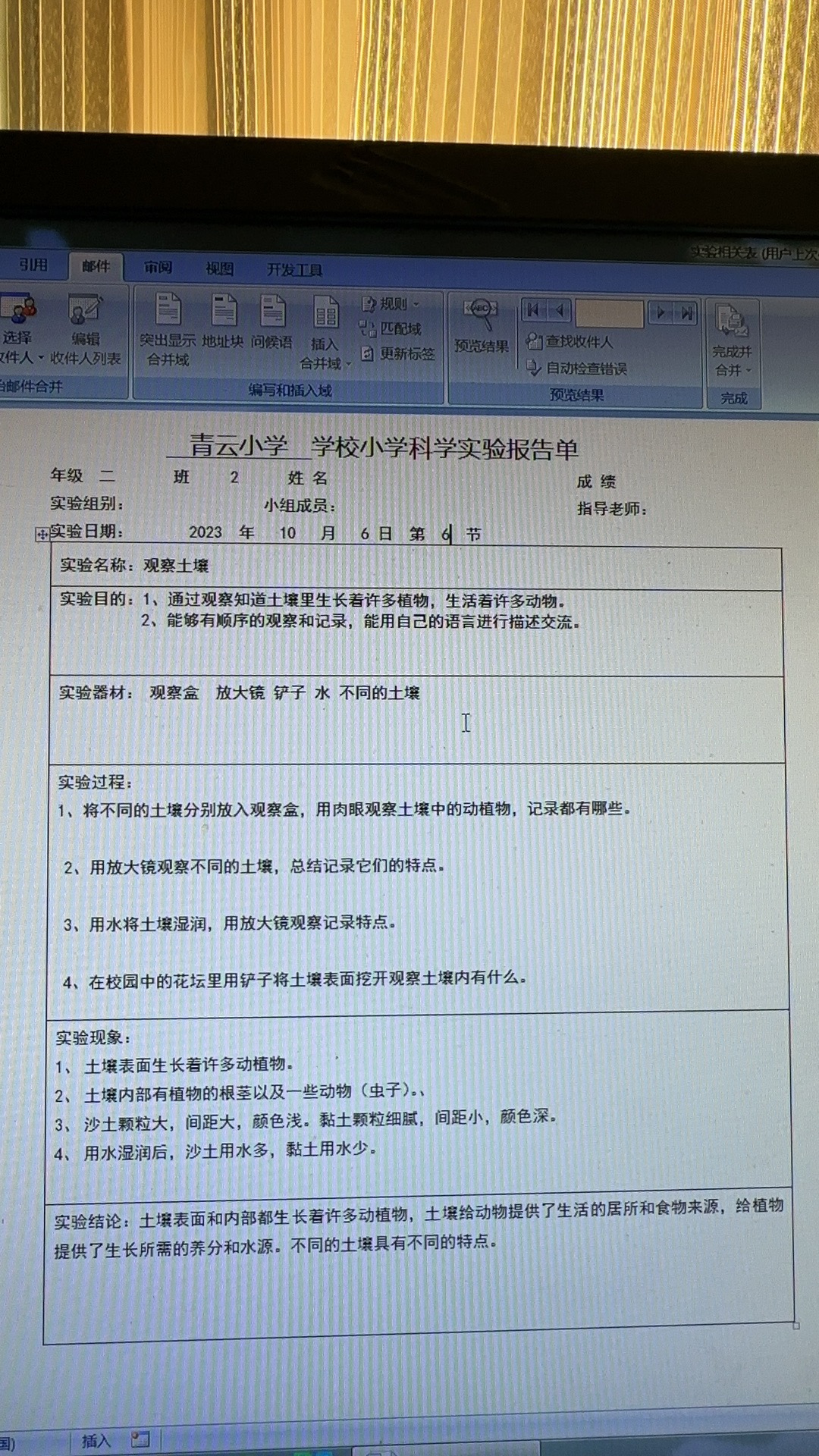 年级科目:二年级科学
