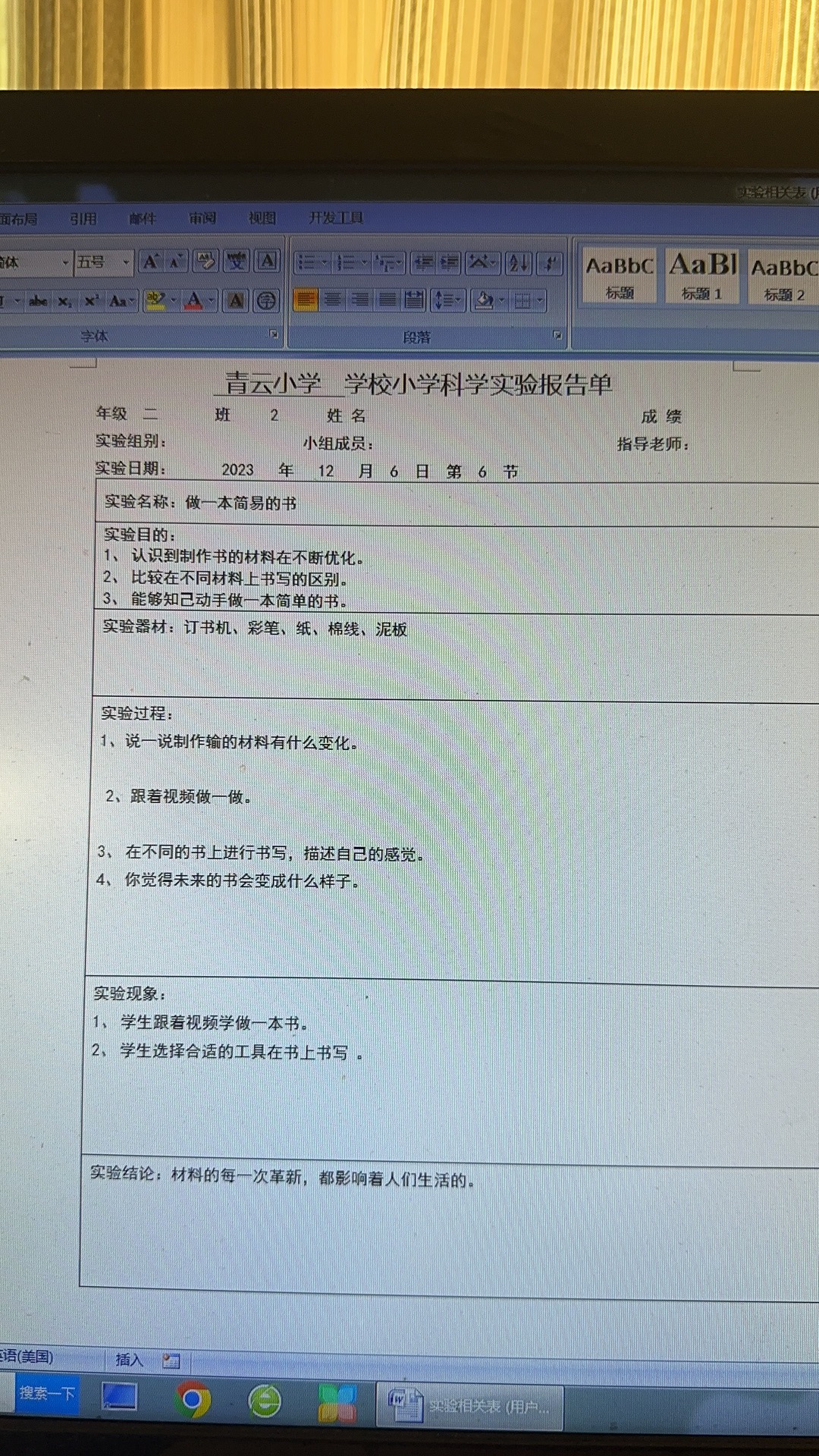年级科目:二年级科学