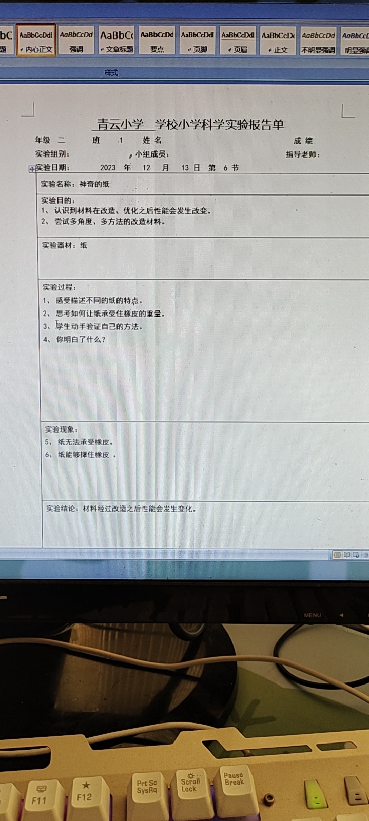 年级科目:二年级科学