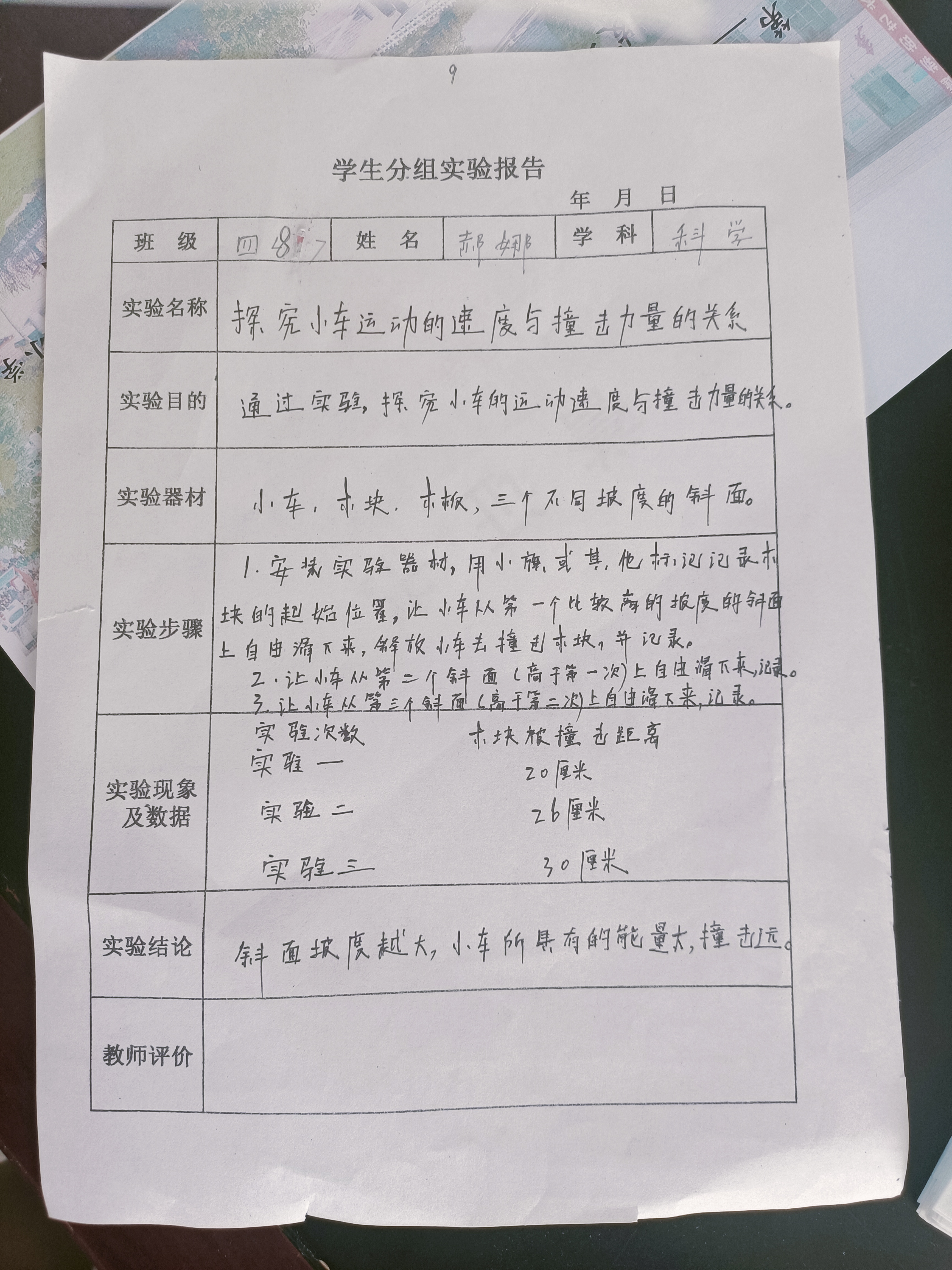 年级科目:四年级科学