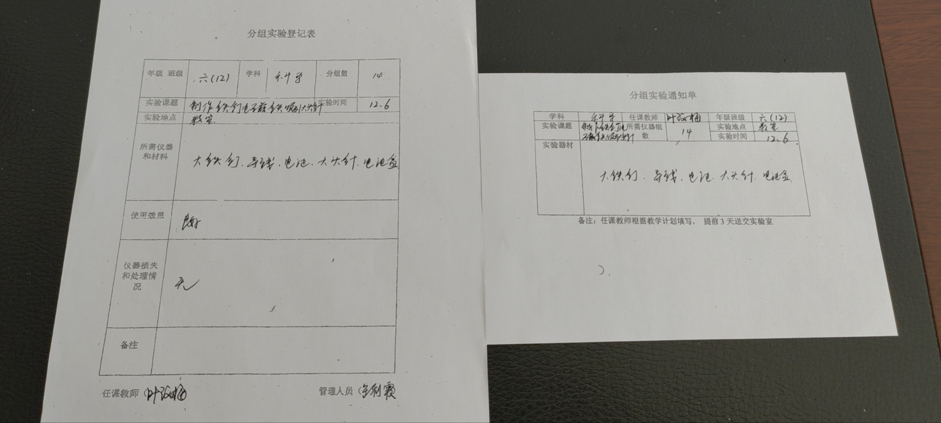 实验登记表