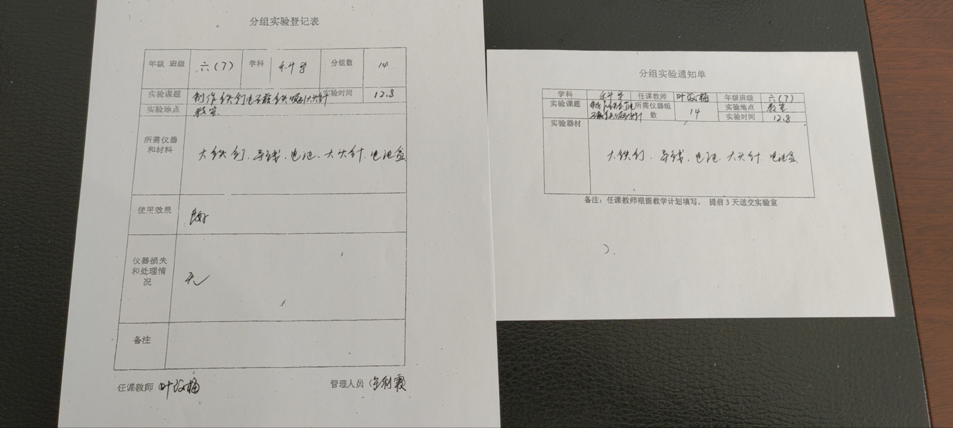 实验登记表