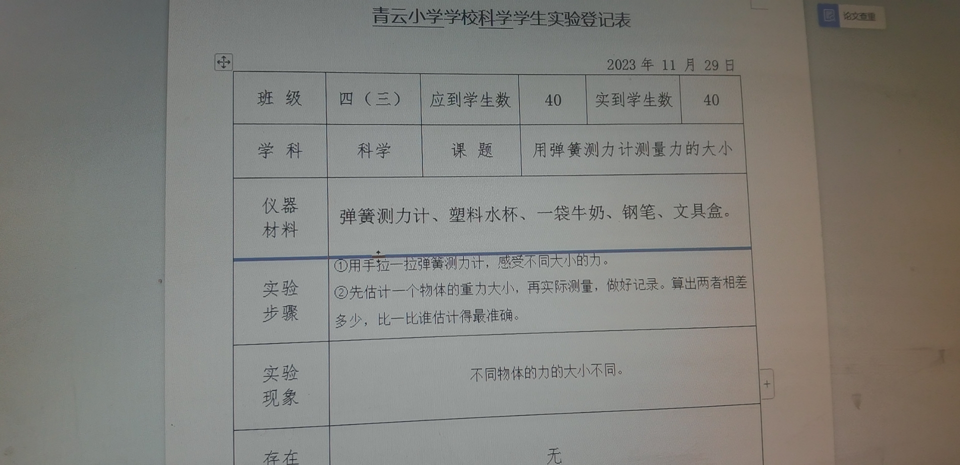 实验登记表