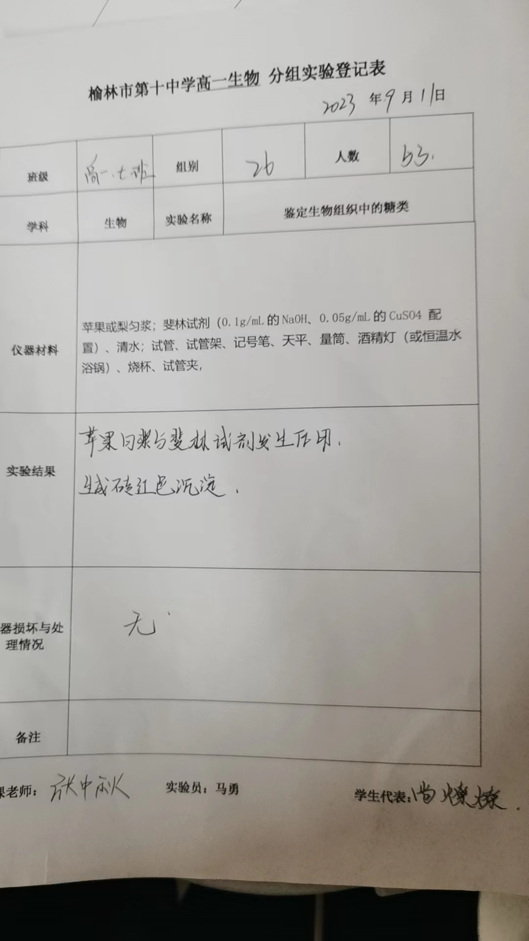 实验登记表