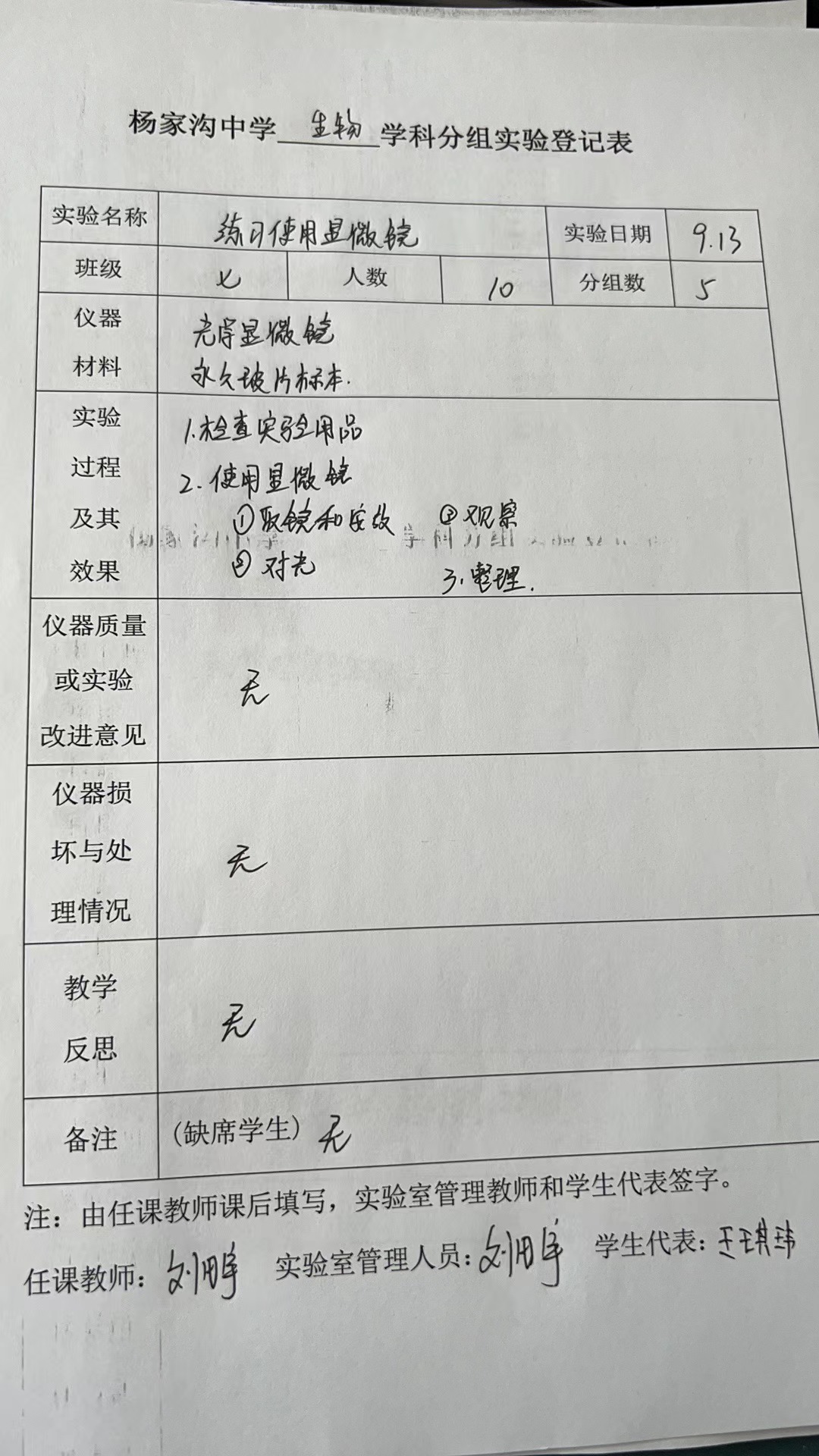 实验登记表